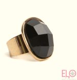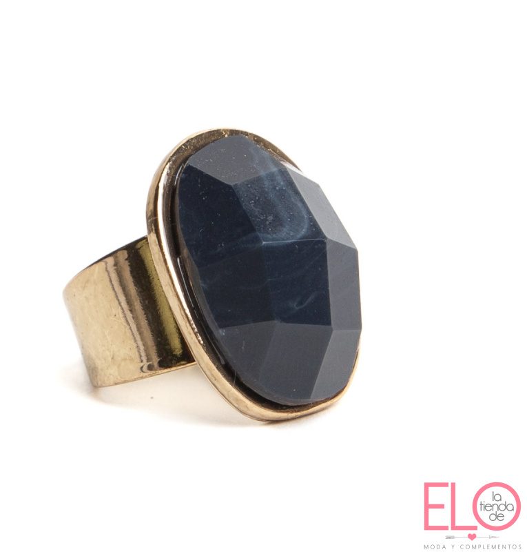 Anillo ajustable en forma oval. con pieza incrustada de resina facetada. en dos colores: negro. azul. Medidas: ajustable.