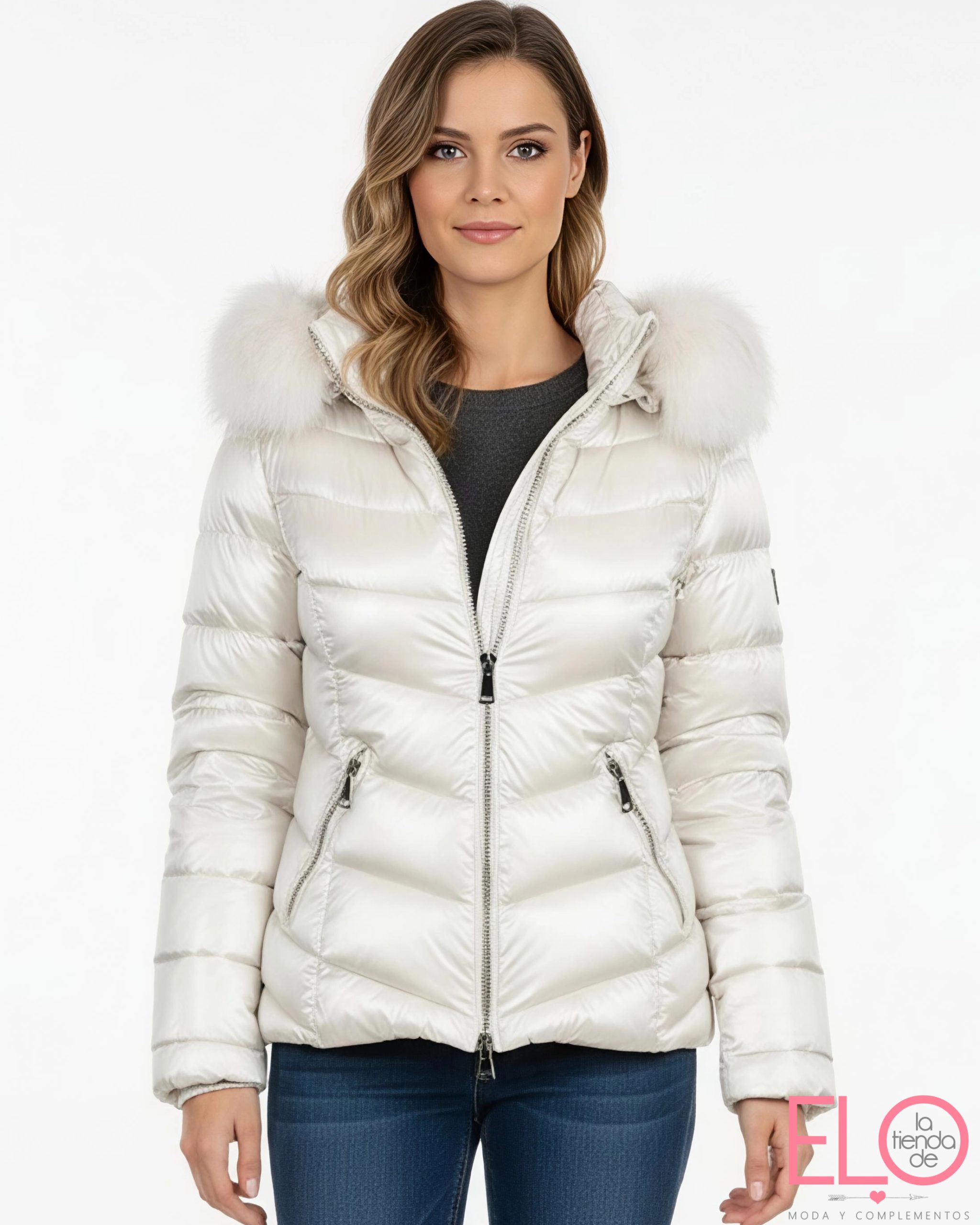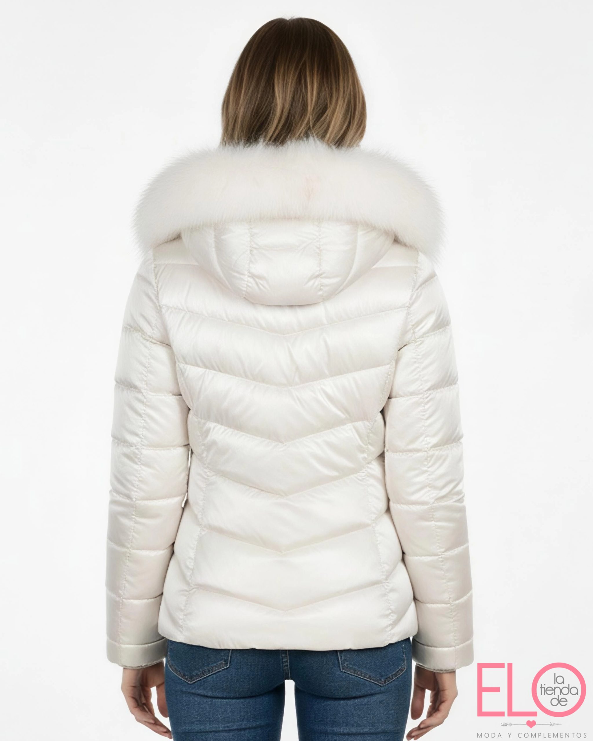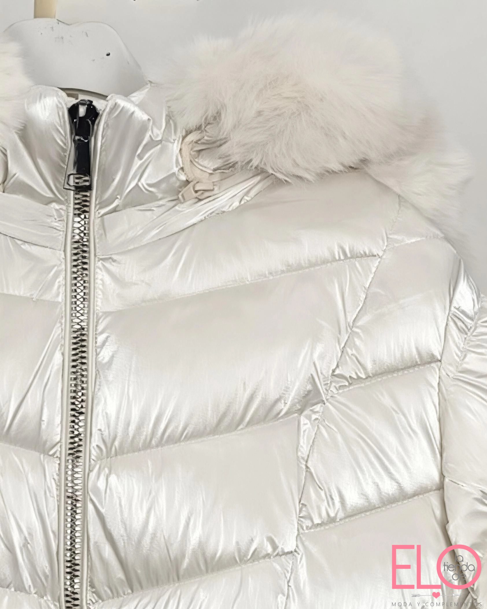 Anorak blanco acolchado, con efecto brillante en el tejido.