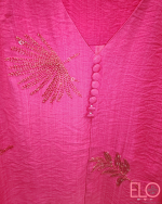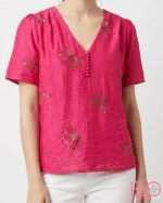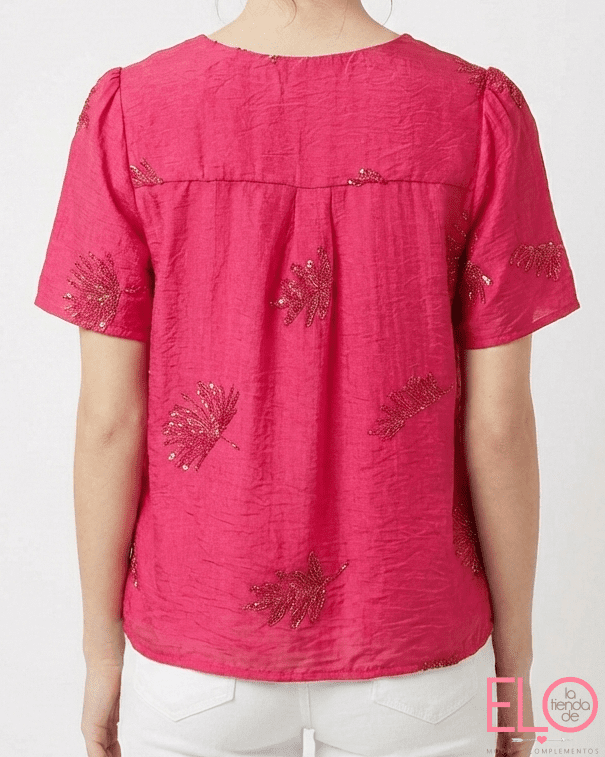 Blusa de color fucsia con cuello en V,