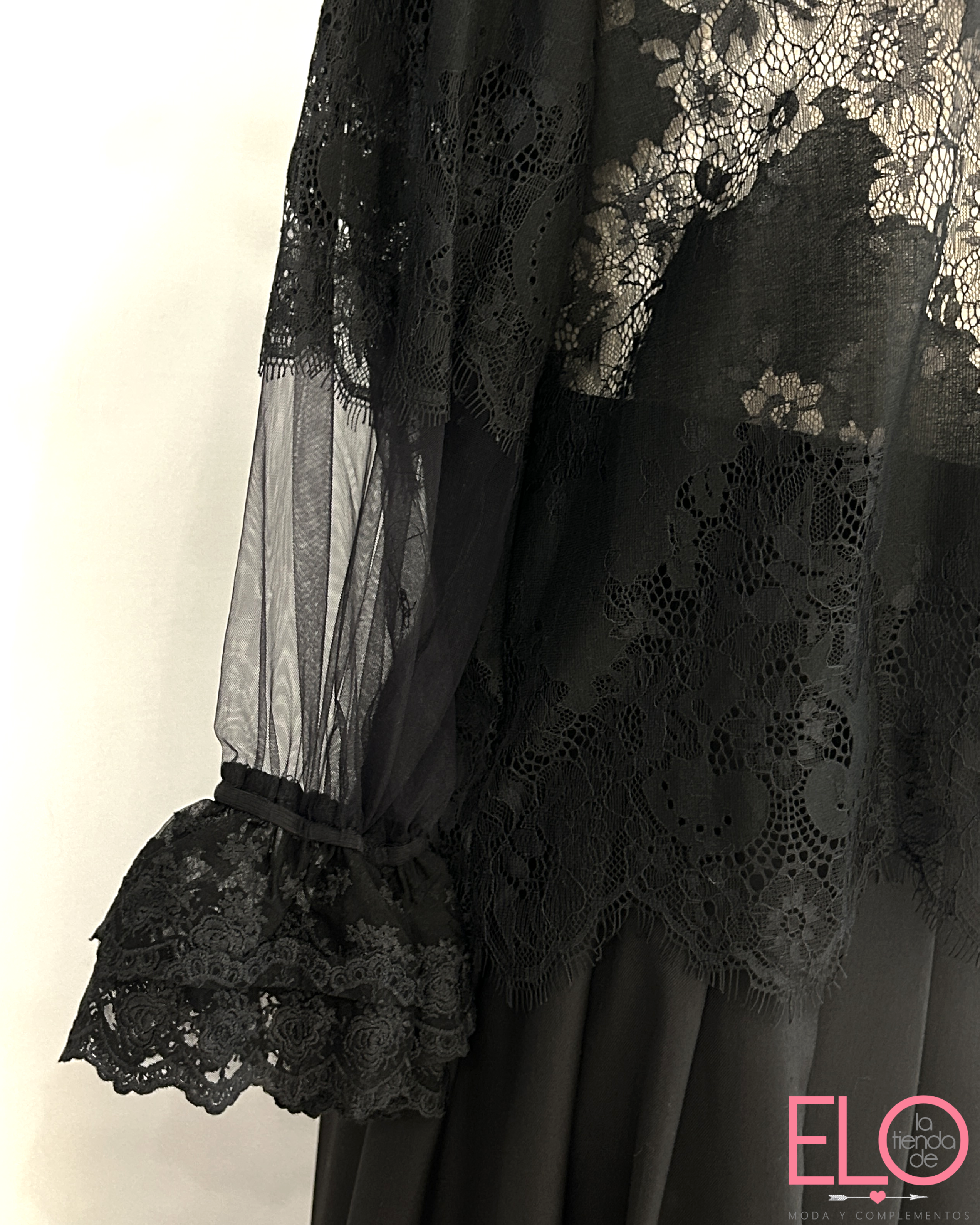 De mangas larga en tul con volantes en los puños.
