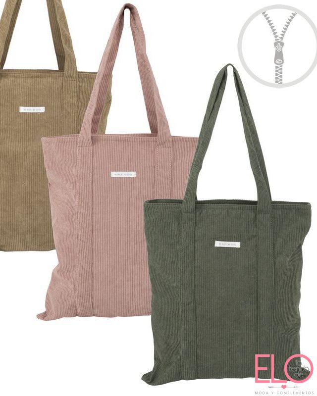 Bolso de tela acanalada en tres colores disponibles.