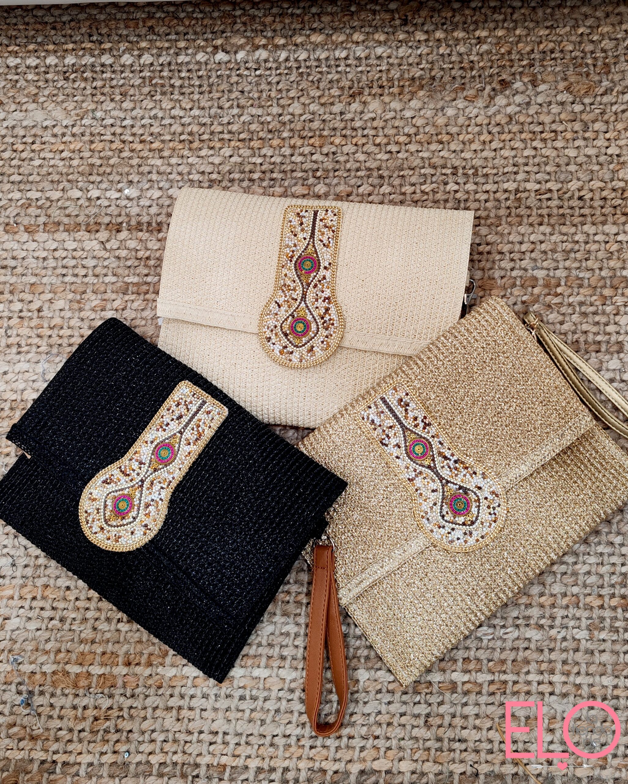 Bolso de rafia disponible en tres colores.