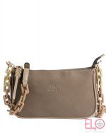 Bandolerita en material sintético tipo ante. con asa de eslabones en resina acabado mate y tirador en fantasía.