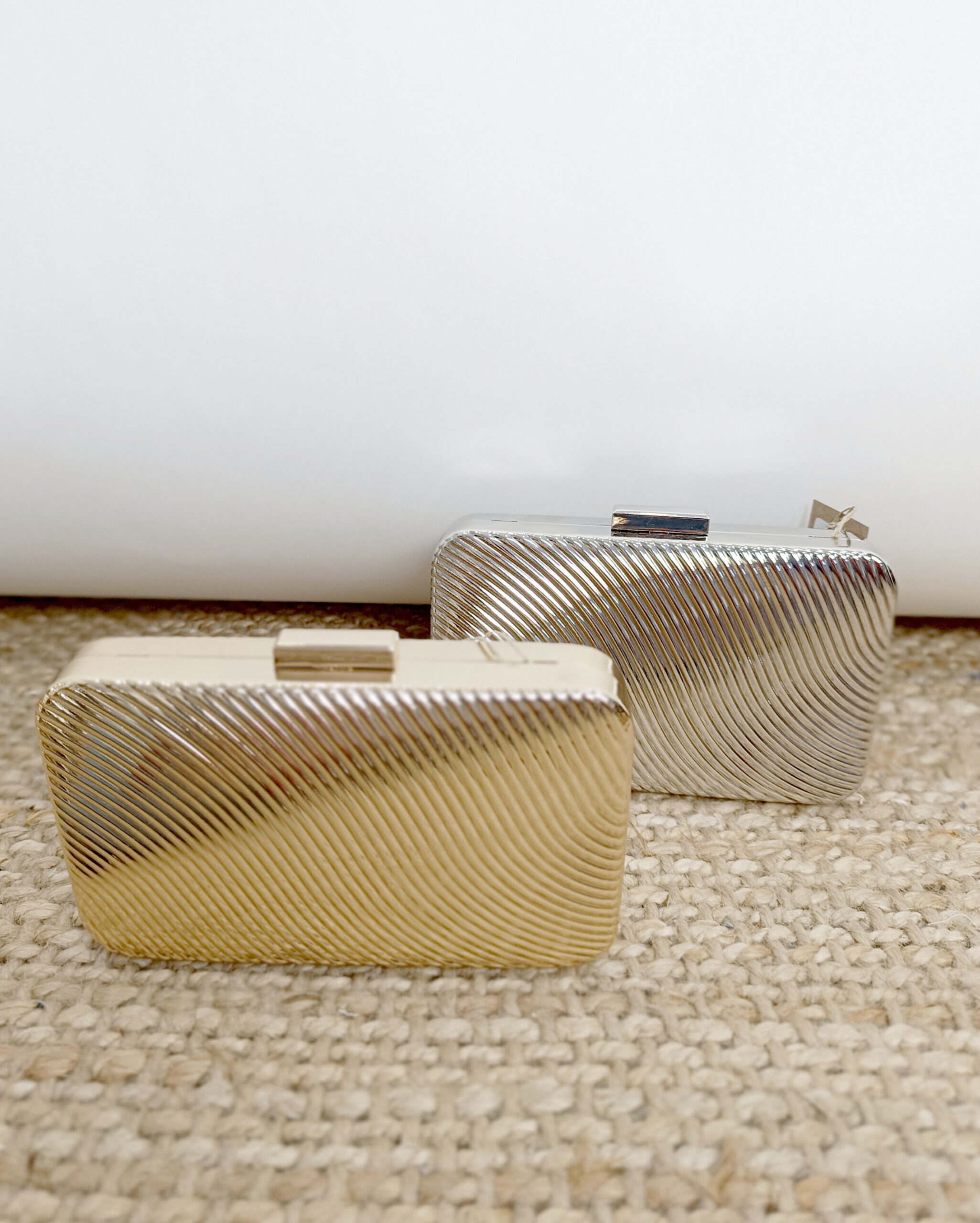 Bolso metálico en color dorado y plata.