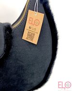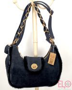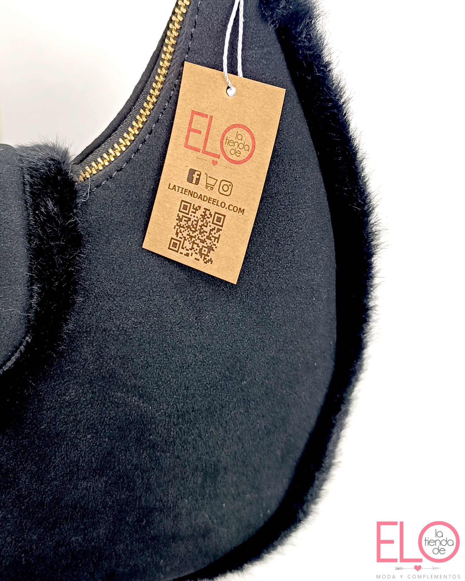 Bolso de color negro con detalles de pelo combinados con metal dorado
