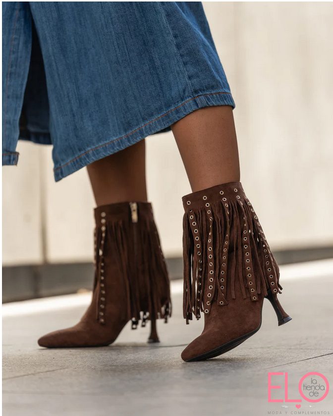 Llevan flecos con tachuelas y cremallera en el lateral.
