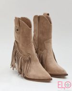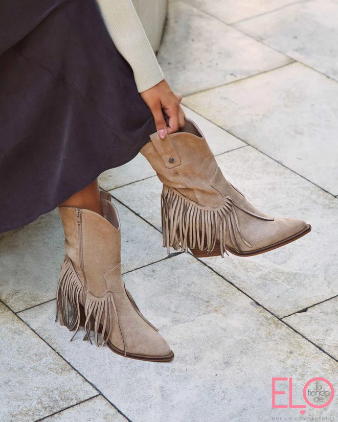 Tipo texanas con flecos y cremallera lateral.
