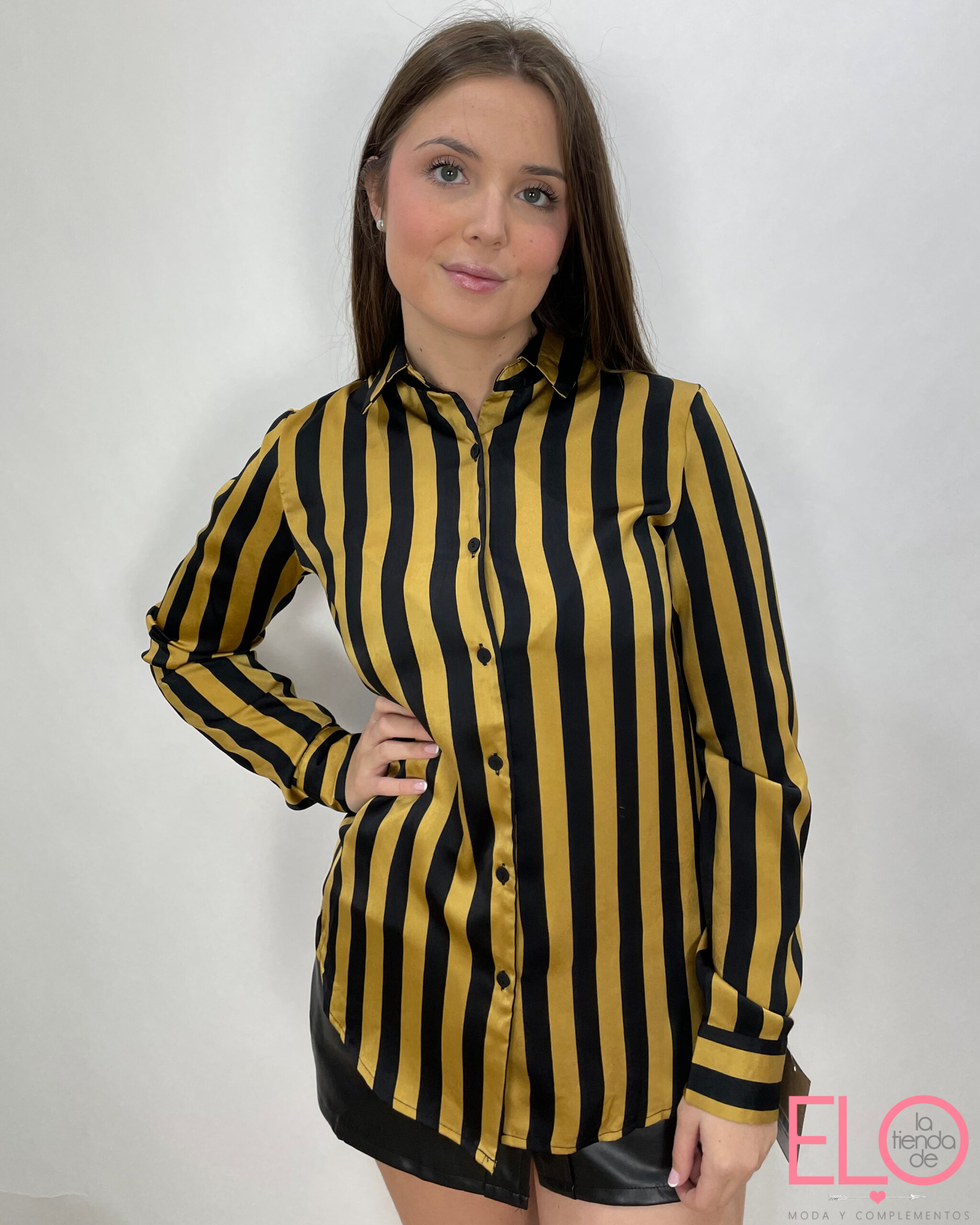 Camisa con diseño de rayas de color mostaza y negro.