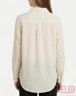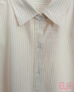 Camisa de color durazno pálido con diseño de rayas blancas finitas.