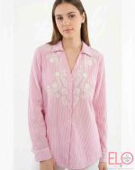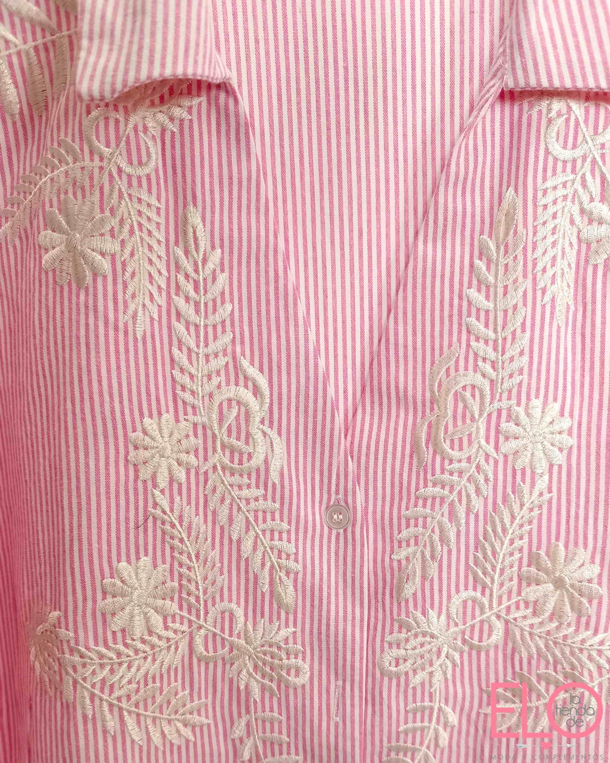 Camisa de color rosa con diseño de rayas verticales blancas.