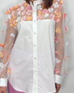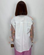 Camisa blanca con tul en las mangas y el pecho.
