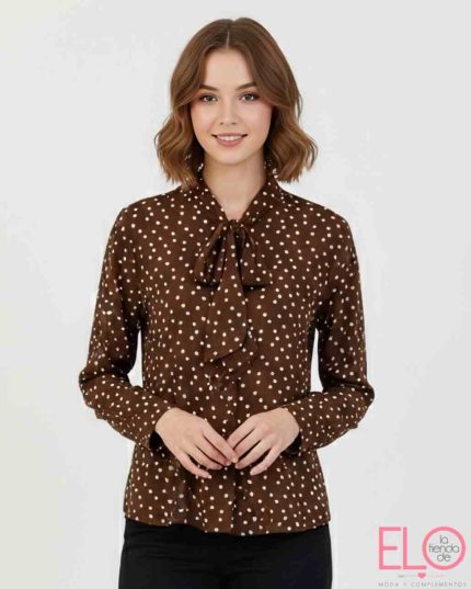 Camisa de lunares con lazo que se puede poner o quitar, es perfecta para primavera/verano.