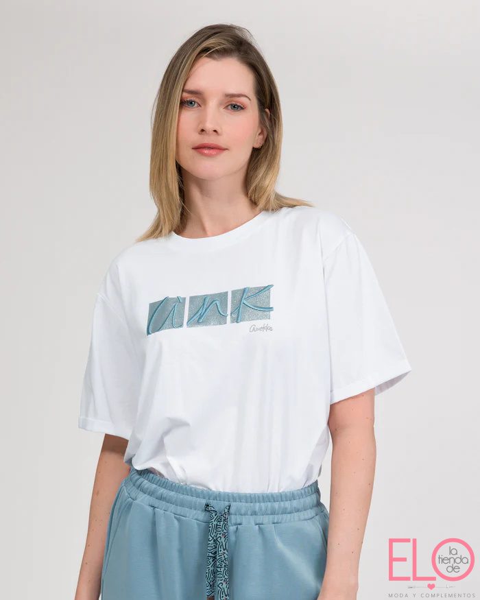Un clásico con identidad propia. Esta camiseta de manga corta en color blanco se convierte en un imprescindible gracias a la estampación frontal en azul de las siglas ANK, un guiño directo al universo Anekke. Versátil y cómoda, es perfecta para darle a tu look un aire fresco y casual con un detalle lleno de personalidad.
