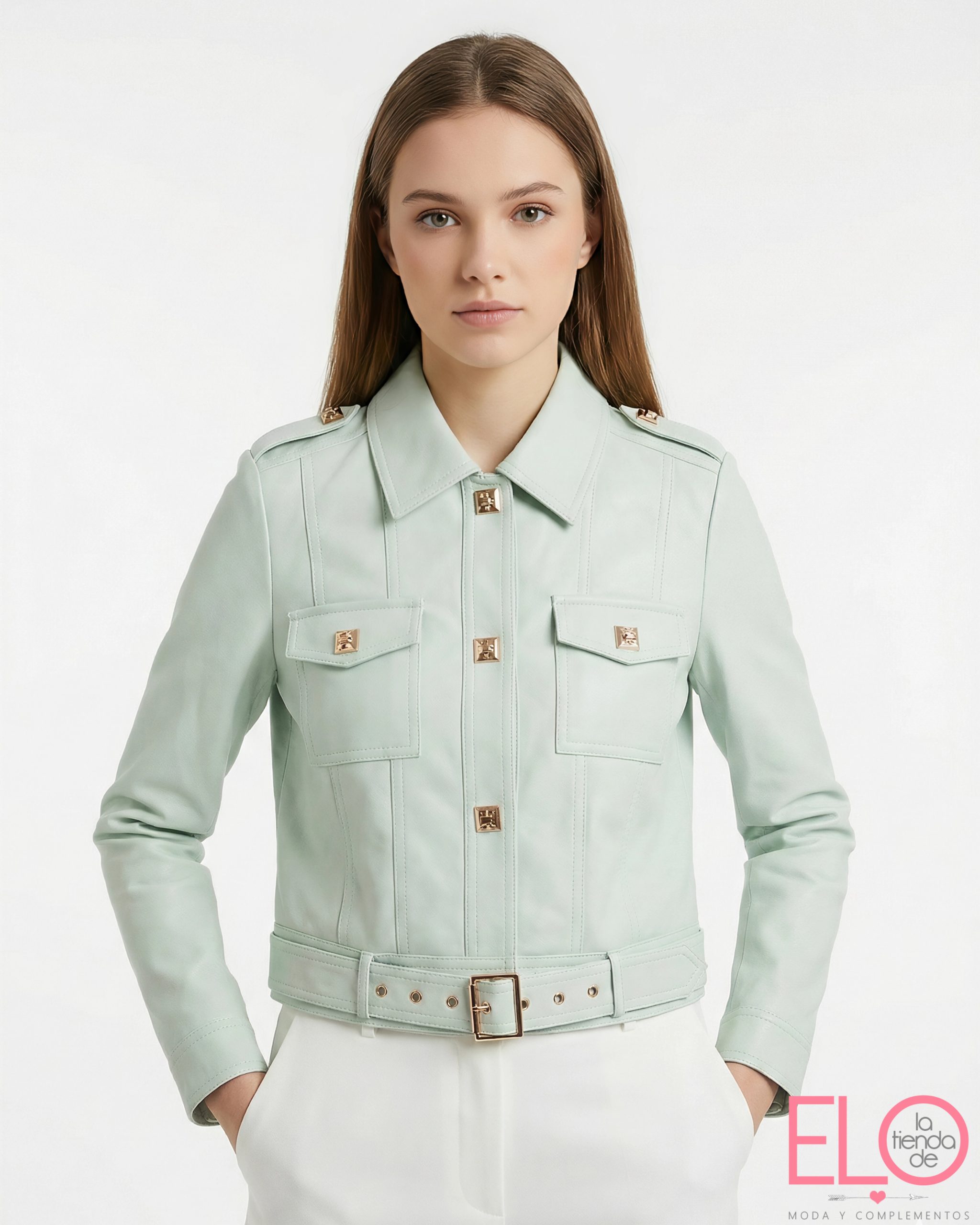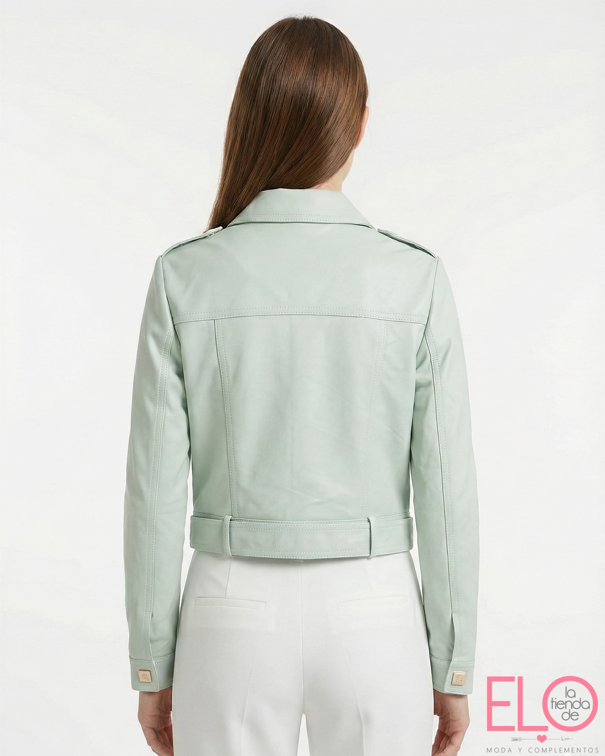 Cazadora en sintético de color verde mint.