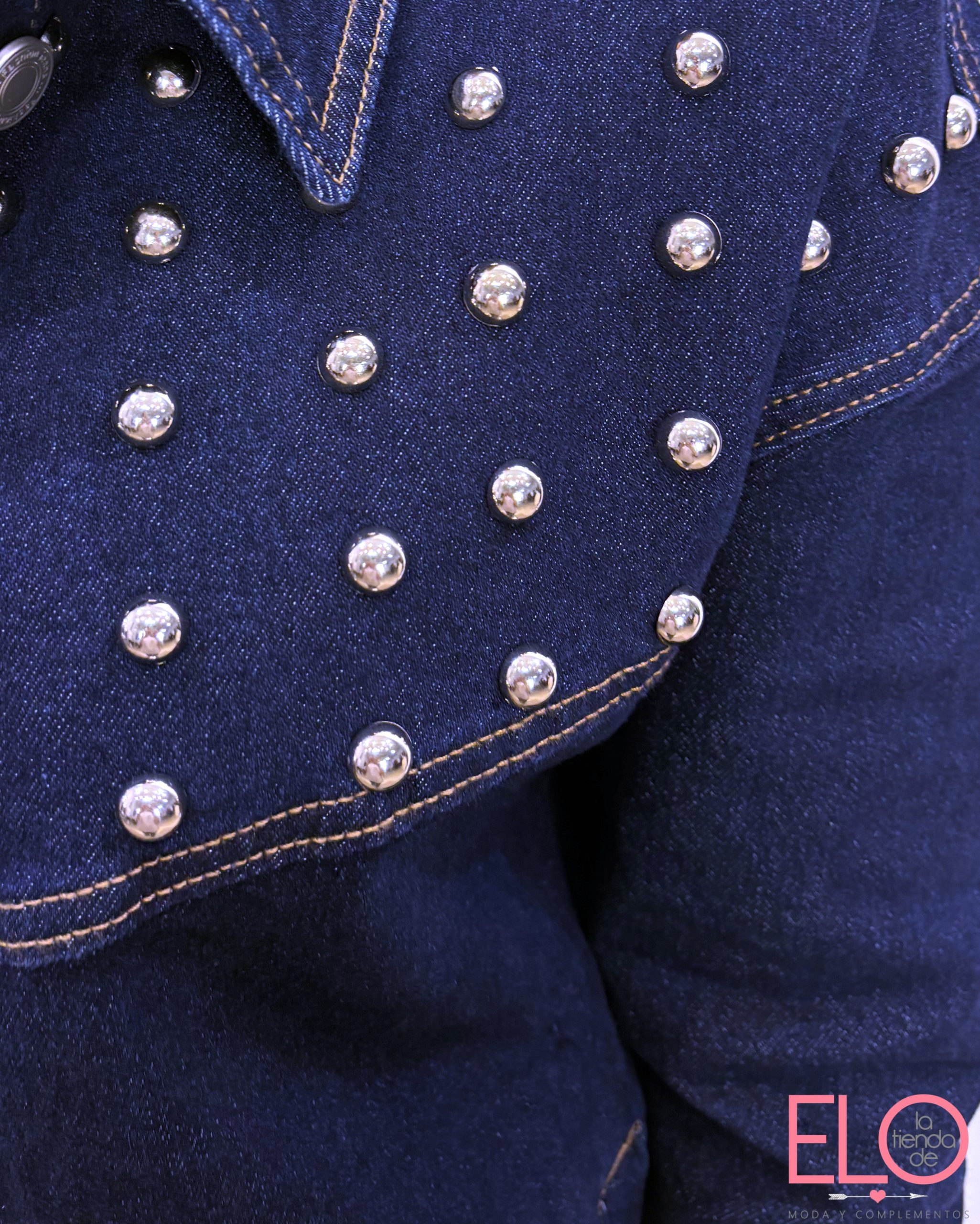 Cazadora vaquera de tono oscuro.