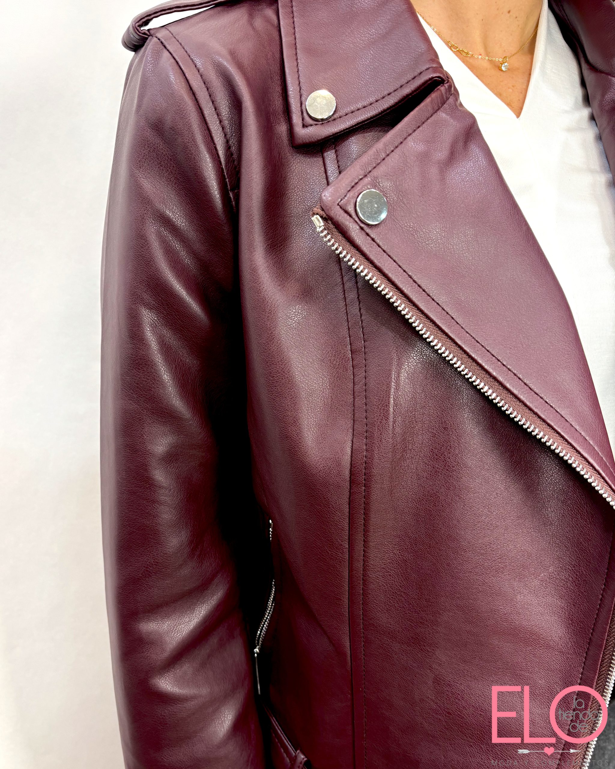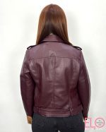 Cazadora de polipiel de color vino.