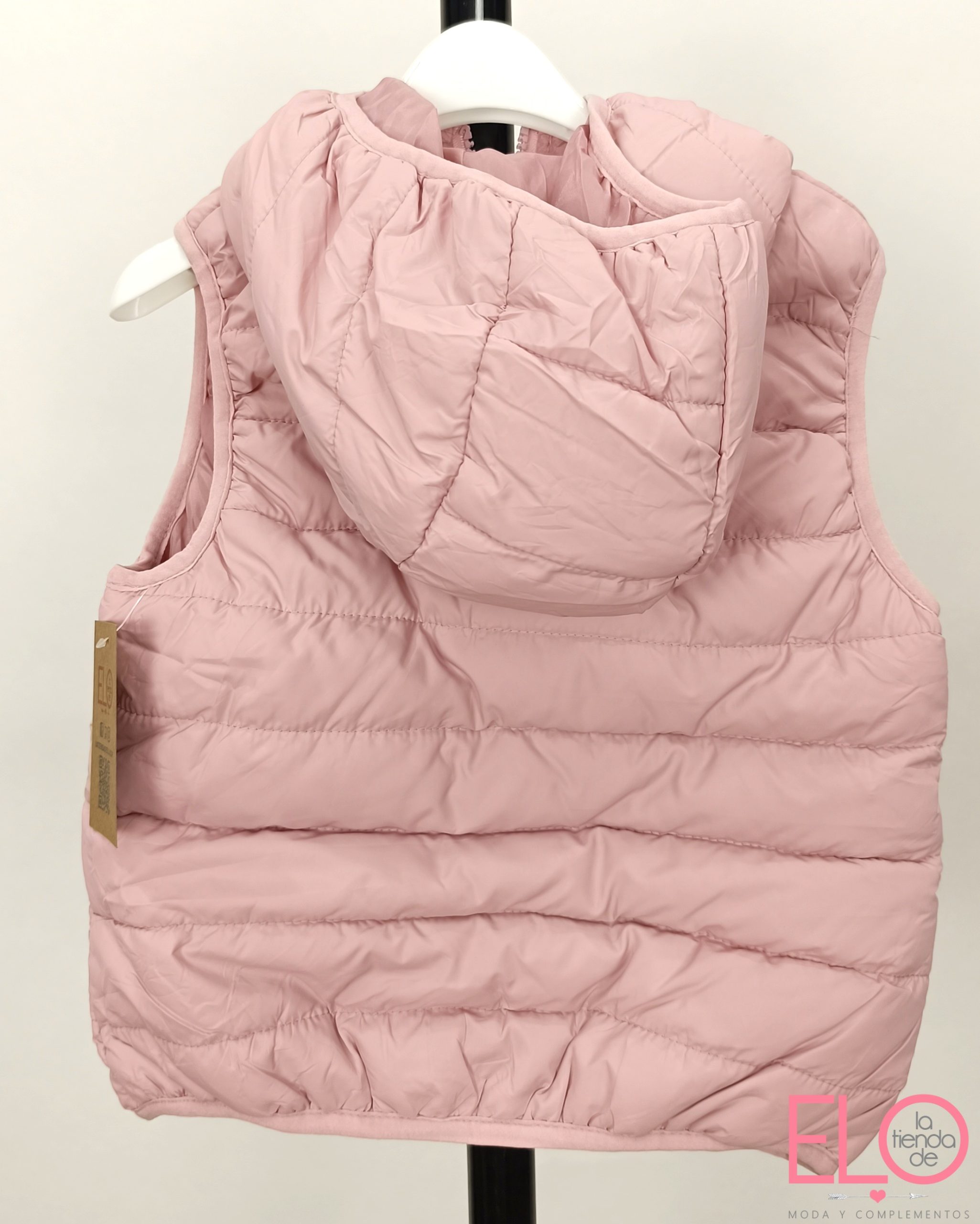 Chaleco acolchado de color rosa.
