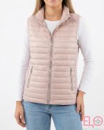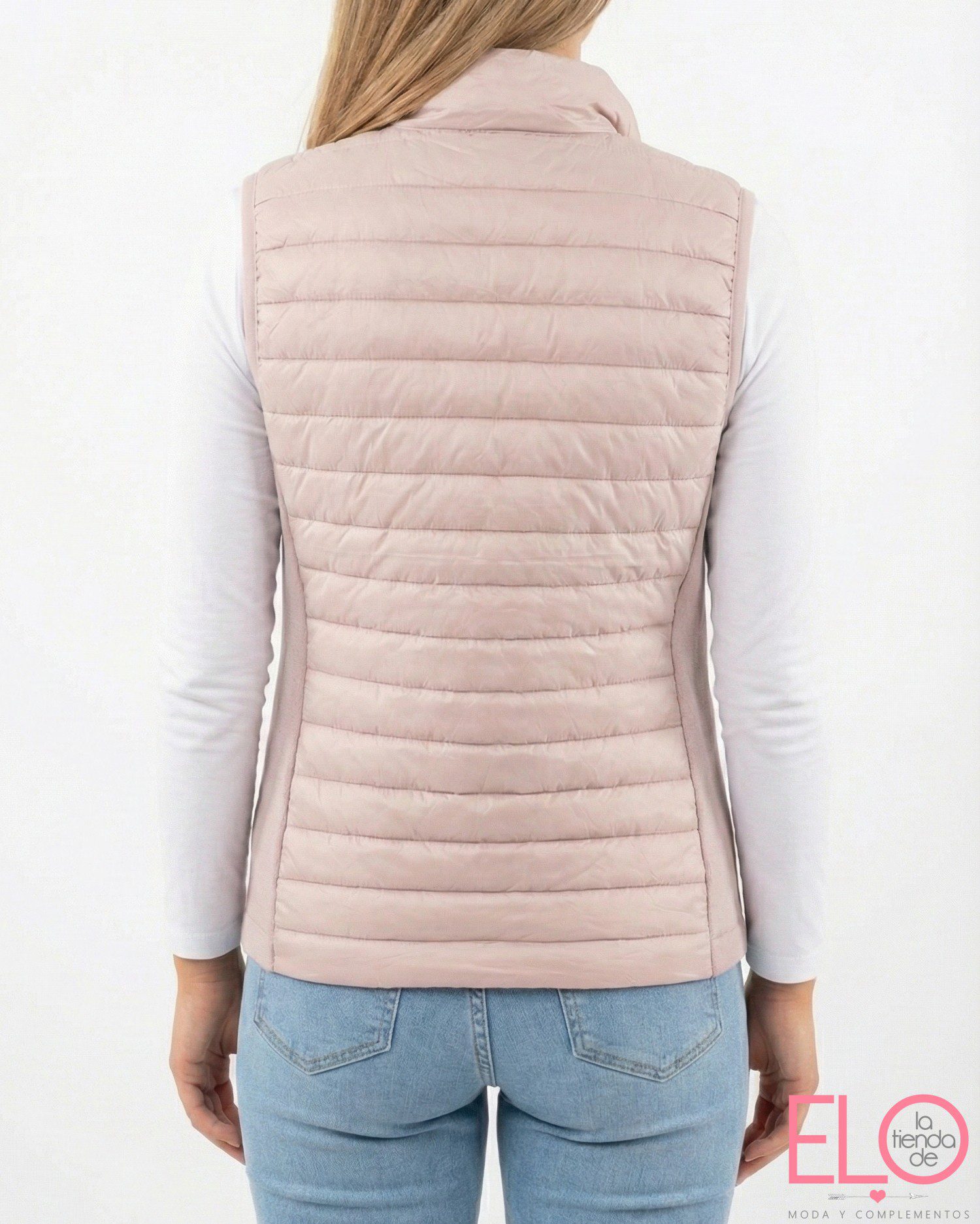 Chaleco de color rosa clarito con elastico en los laterales, ideal para combinar con camisa blanca y jeans.