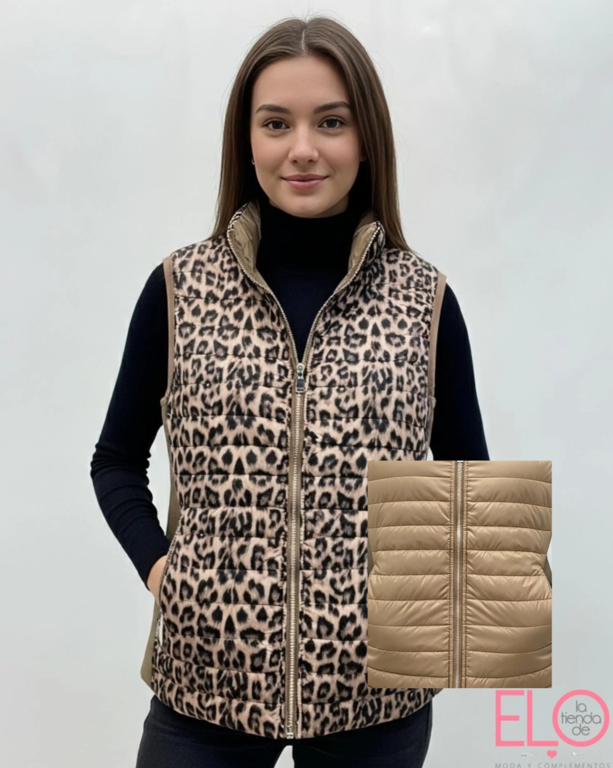 Chaleco reversible con elastico en los lados que hace que se adapte genial a la silueta.