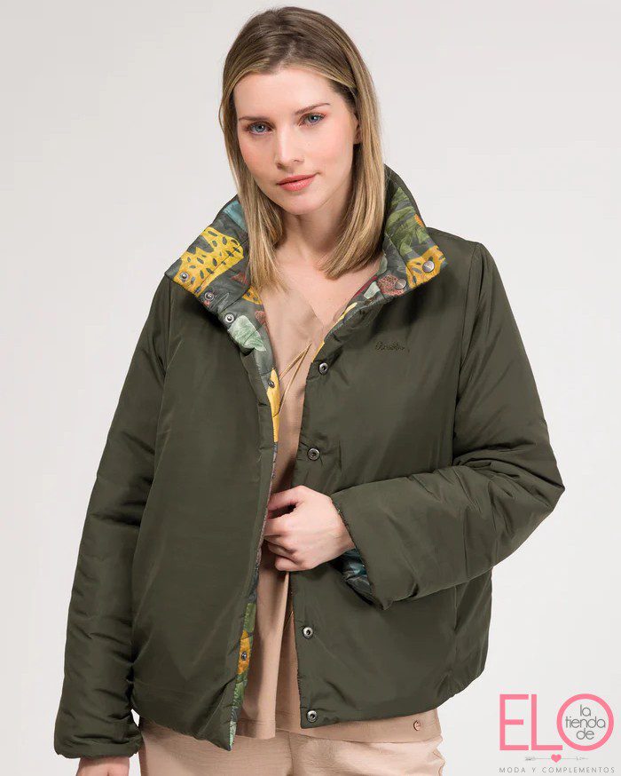 Chaqueta reversible acolchada: por un lado, verde militar que suma serenidad; por el otro, el estampado de la colección Amphora. Cierre de click ágil y seguro. Ligera y cálida sin peso, con silueta cómoda. Minimal cuando la llevas lisa; artística cuando le das la vuelta. Perfecta para viaje y ciudad: con denim, vestido o sastre relajado. ¡Elige ya la tuya!