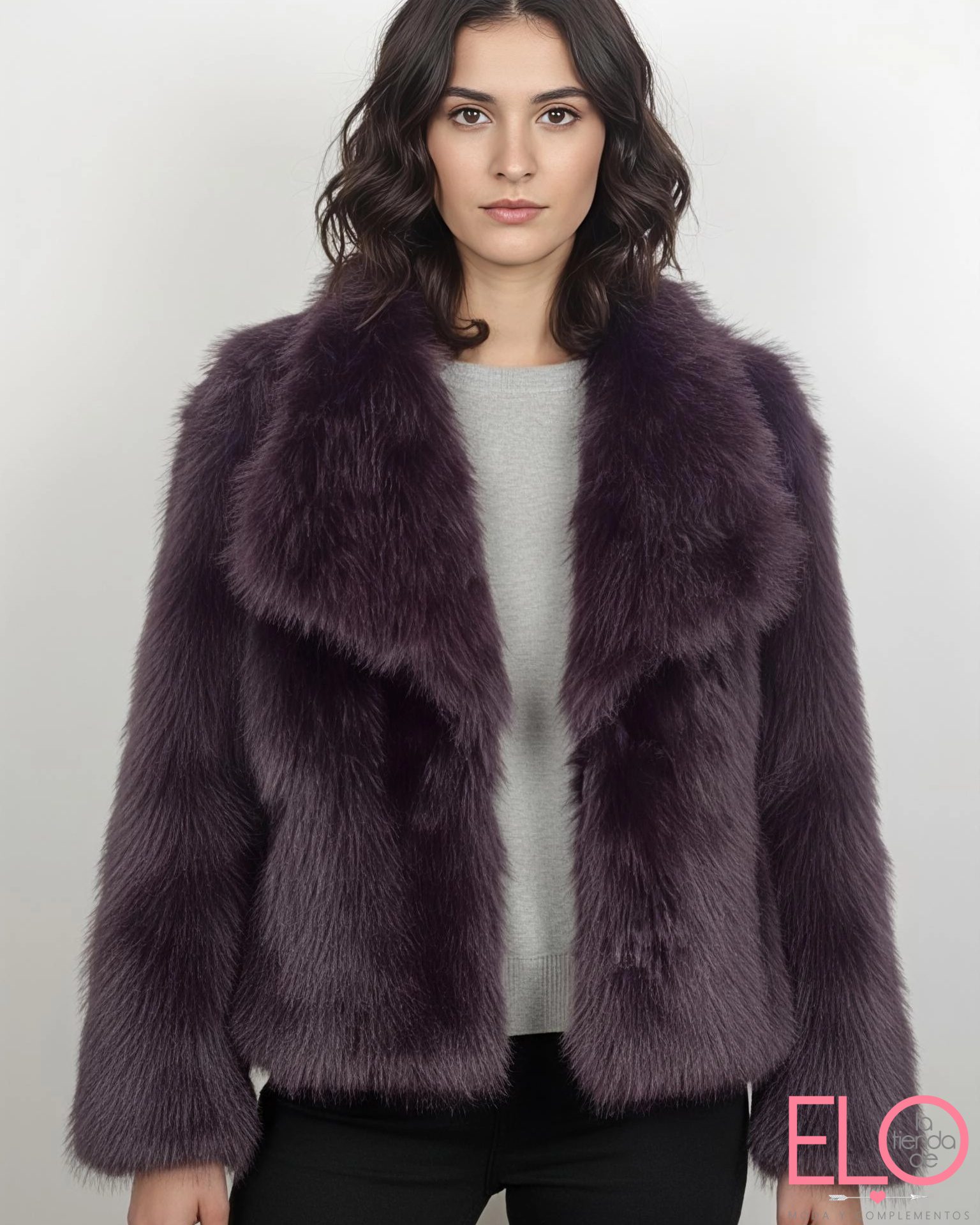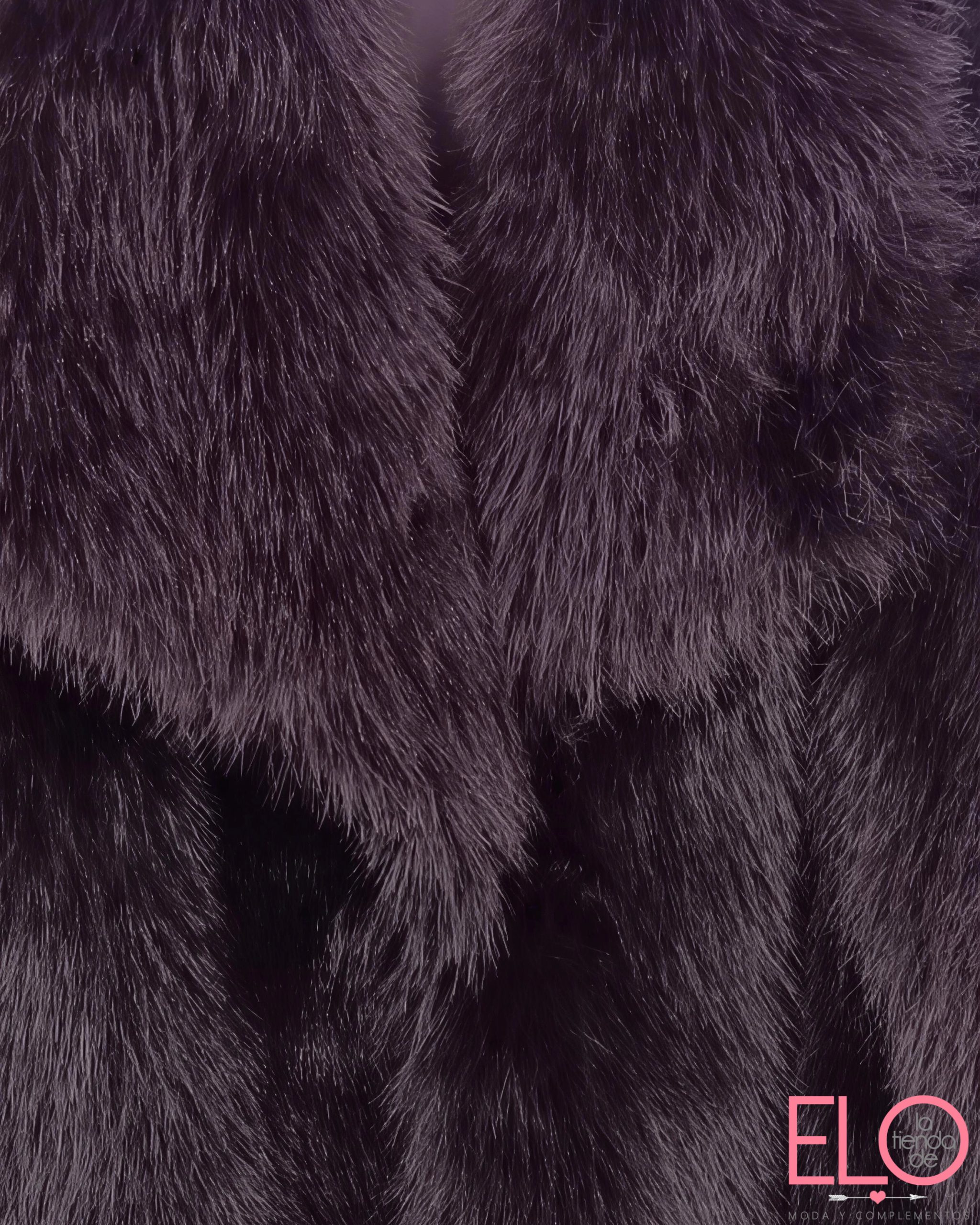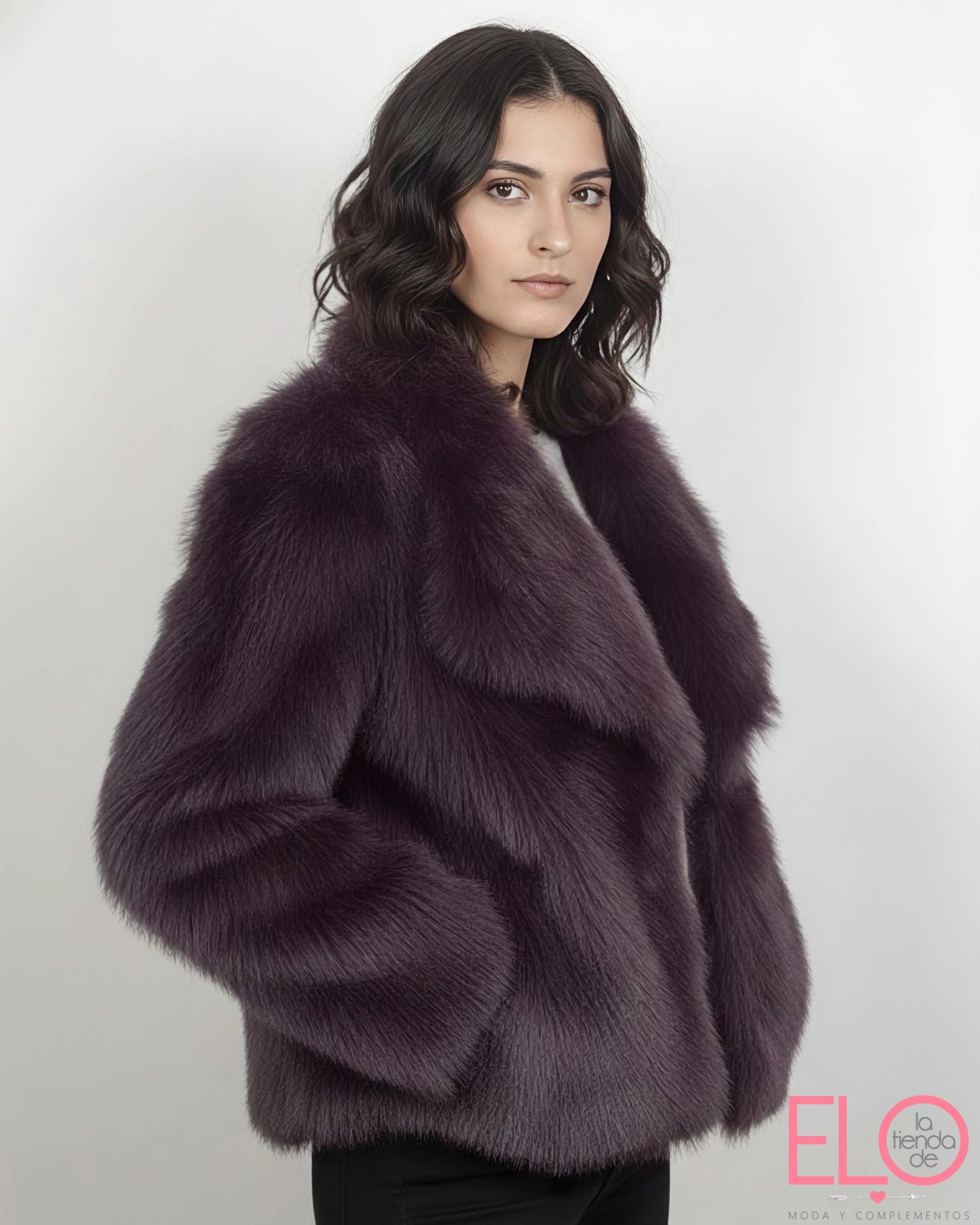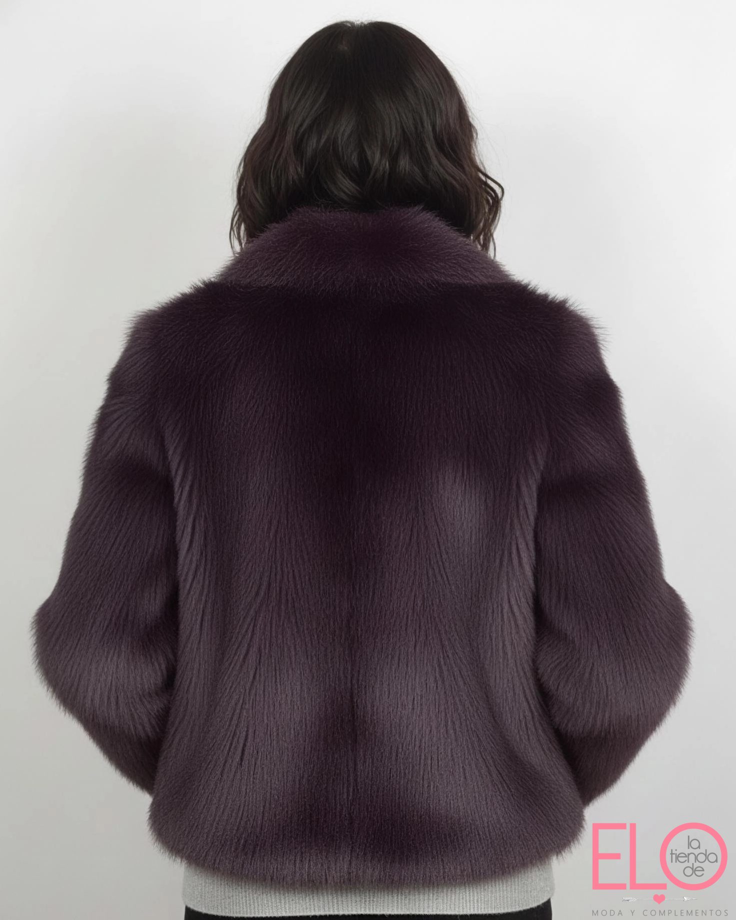 Chaqueta de pelo de color burdeos con cierre central invisible por polleras