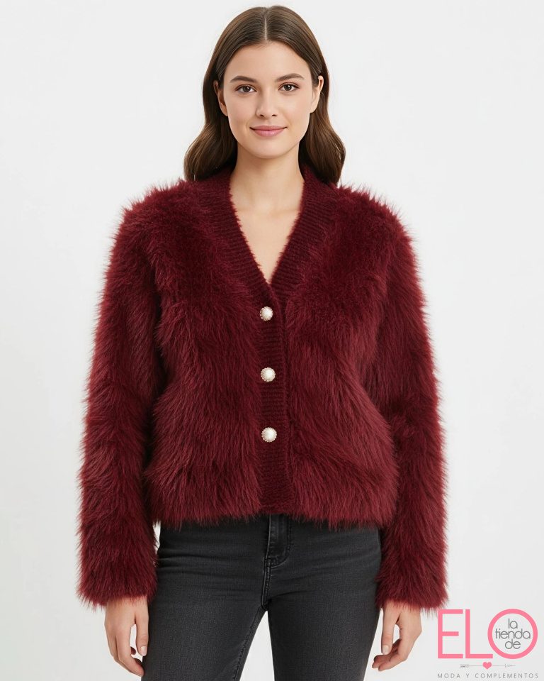 Chaqueta de pelito de color granate.