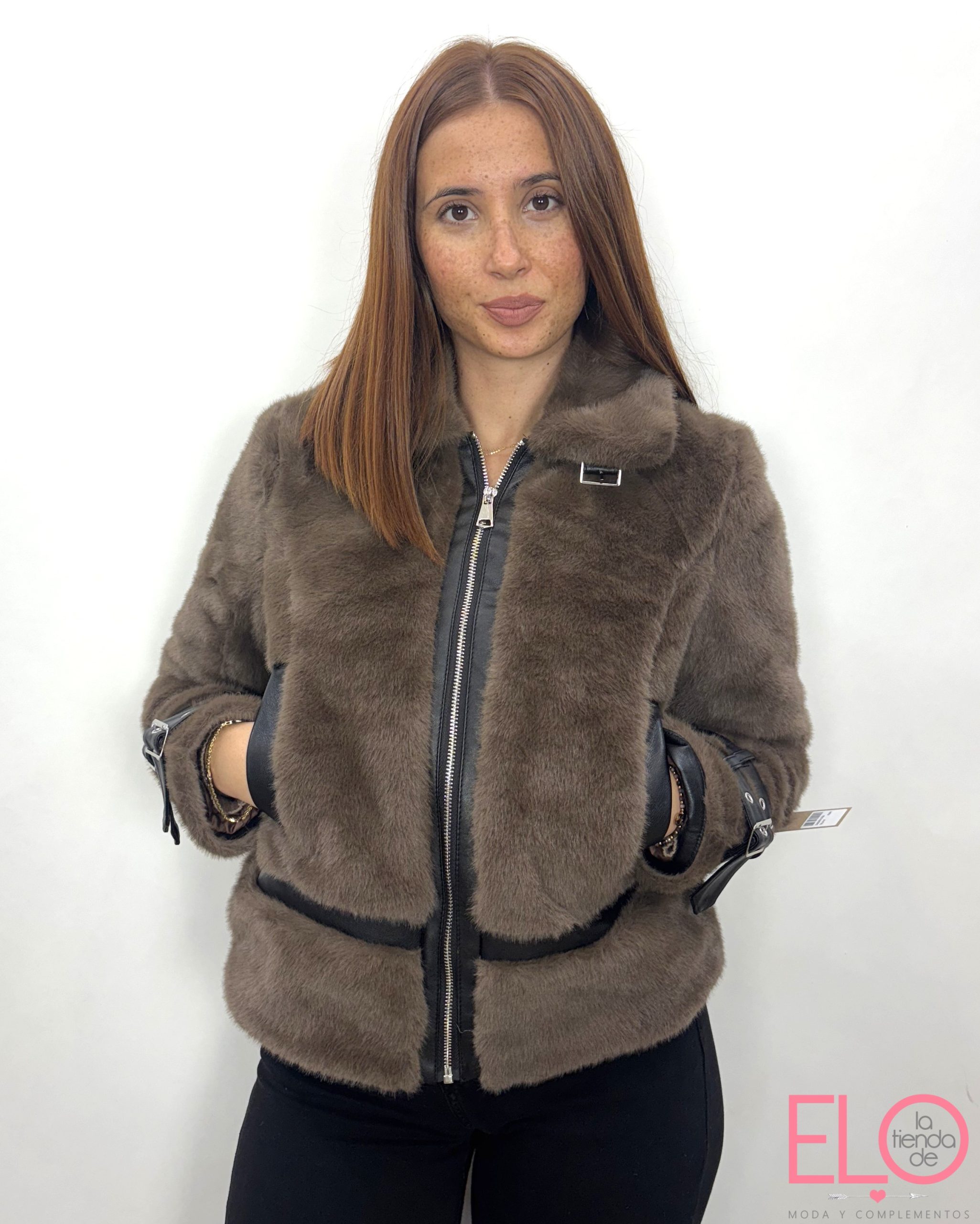 Chaqueta de pelo de color marrón