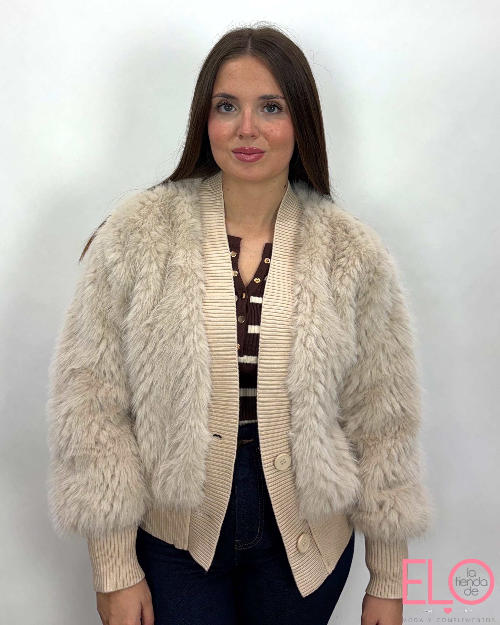 Chaqueta de pelito de color beige.