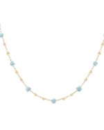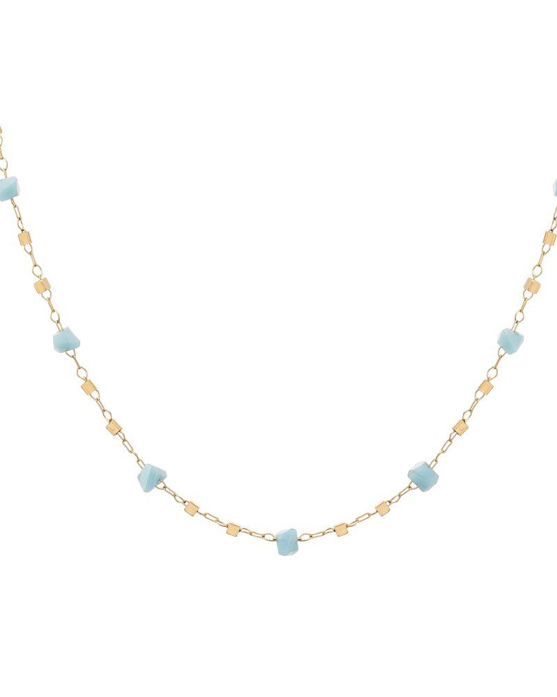 Este collar, con su diseño sencillo y sofisticado, es el complemento perfecto para iluminar cualquier conjunto. Su delicada cadena de acero inoxidable bañada en oro realza la belleza de la turquesa, creando un equilibrio armonioso entre lo moderno y lo natural.