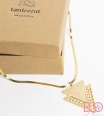 Collar corto de cadena tipo «snake» con colgante de triángulos en filigrana, ,en acero inoxidable con baño de oro de 14K.