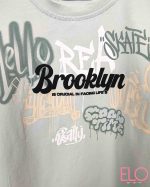 La camiseta lleva estampado de letreros tipo street.