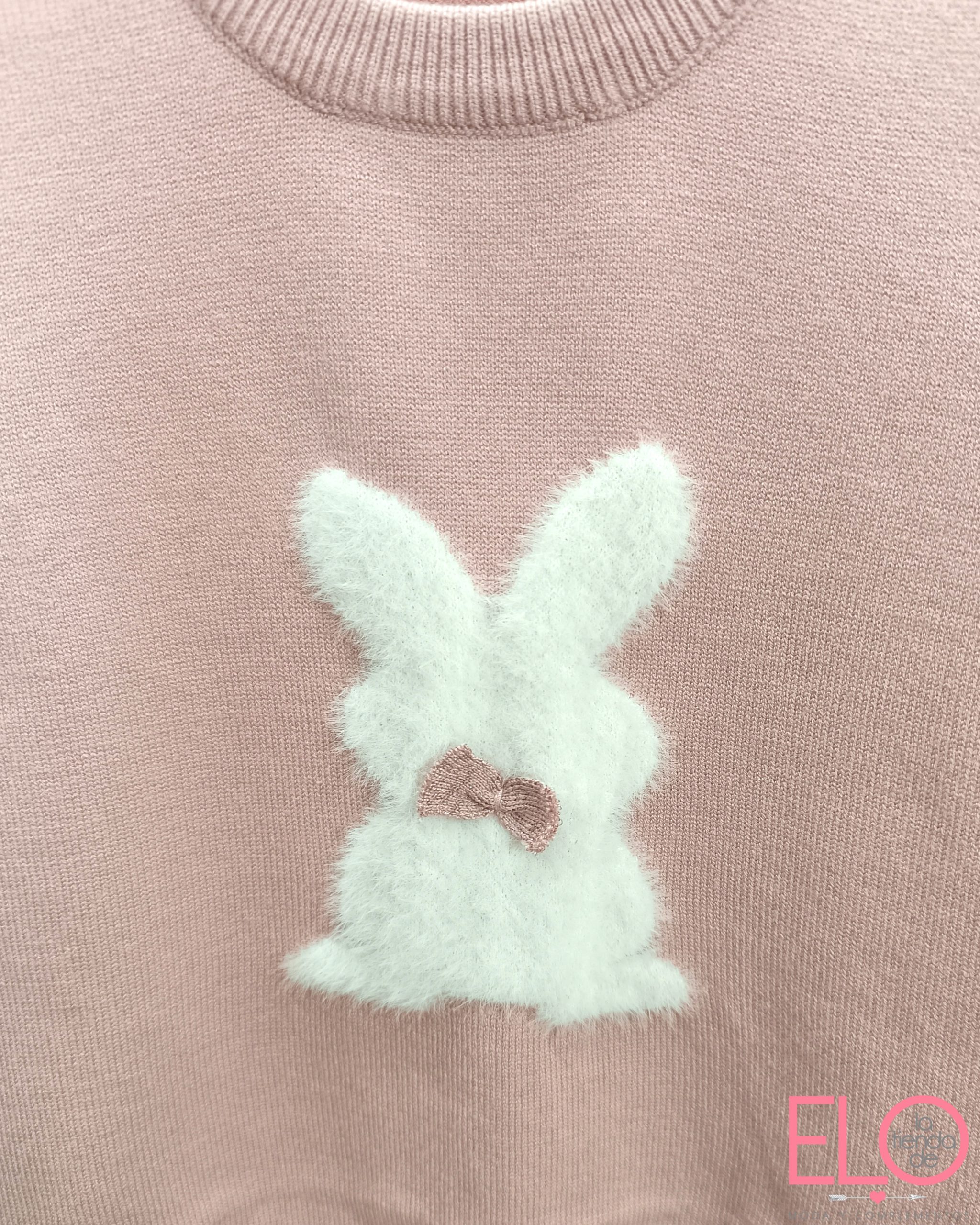 El jersey lleva un conejito con pelito blanco.