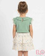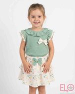 Conjunto niña compuesto por camisa y falda coordinada, diseñado con un estilo dulce y muy cuidado.