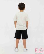 La bermuda con goma en la cintura, bolsillo y estampado de letras blancas.