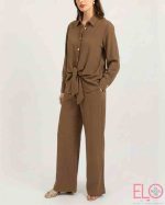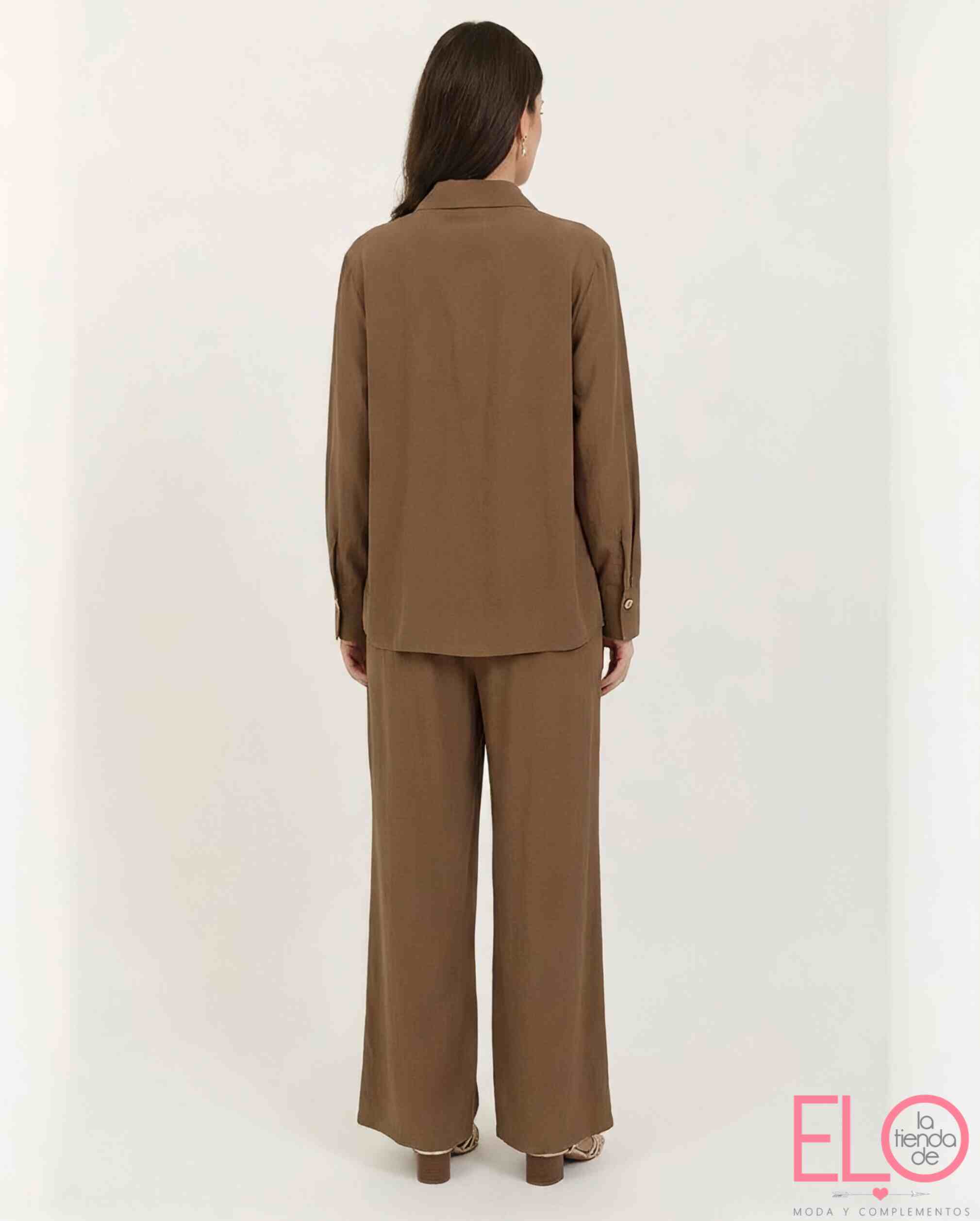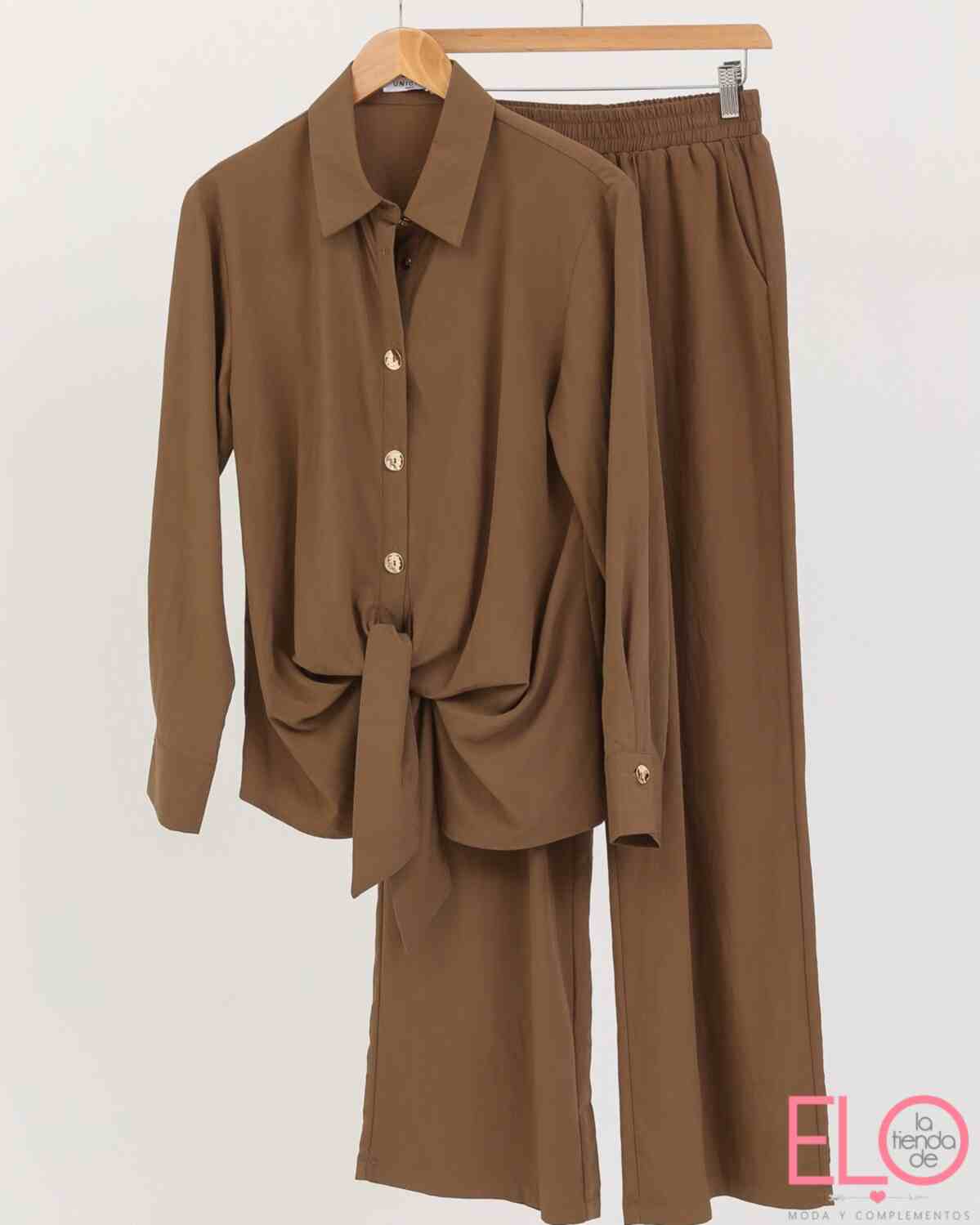 conjunto de camisa y pantalón de color marrón