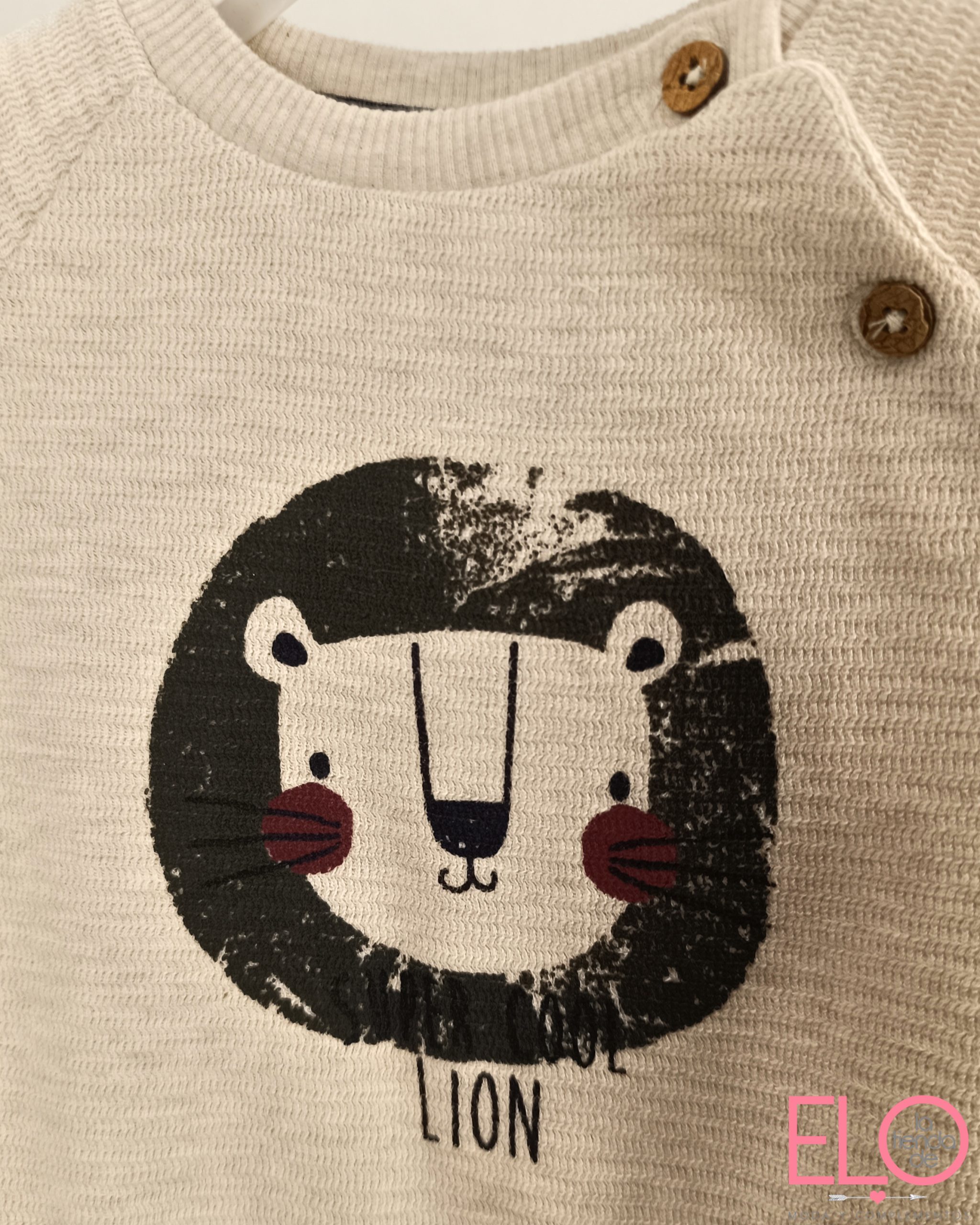 Sudadera con tejido grabado al tono, con dos botones y estampado de leon.