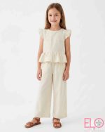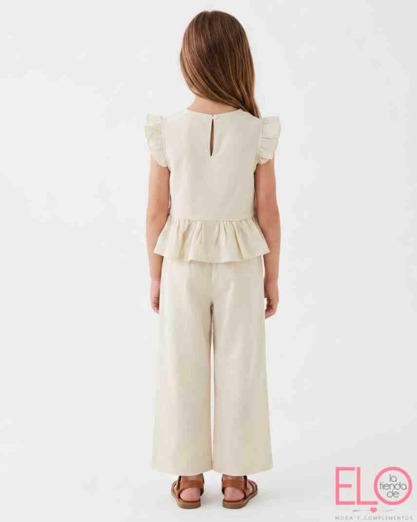 Conjunto infantil de dos piezas, fresco y elegante para primavera-verano de color beige.