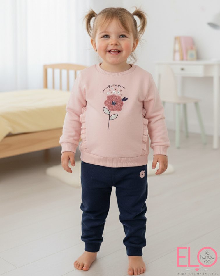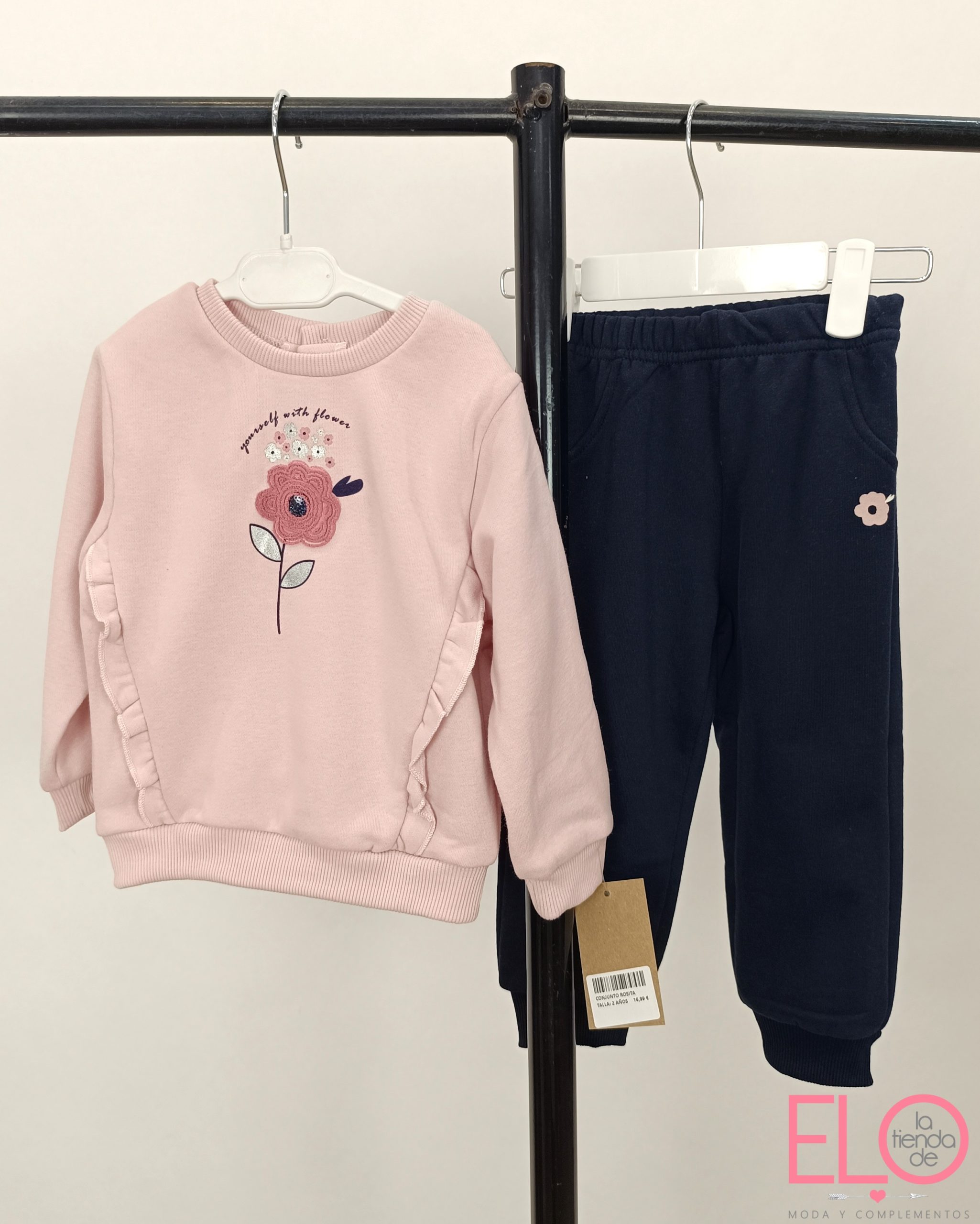 Conjunto de sudadera rosa y pantalón de chándal marino.