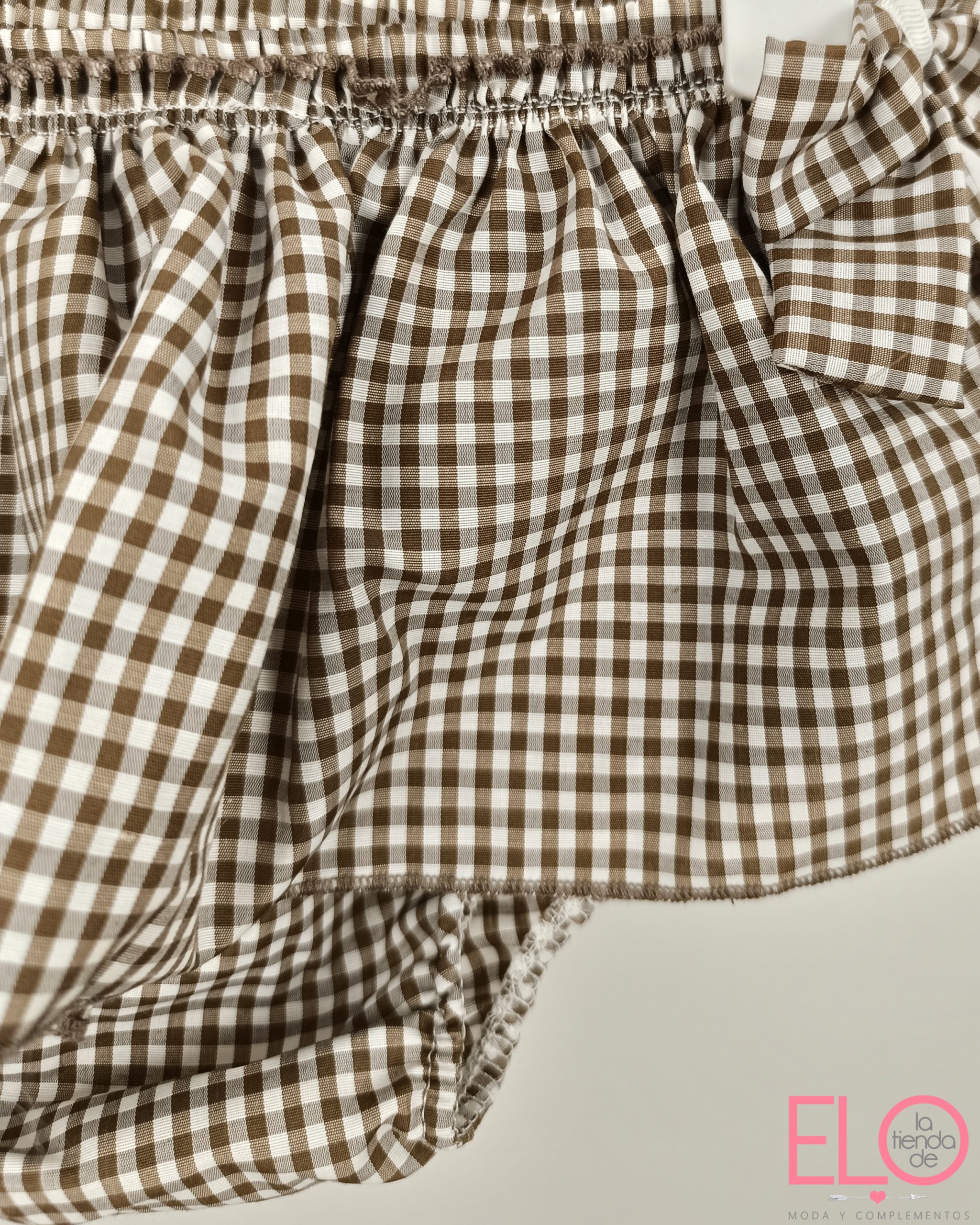 La braguita lleva volantes con el mismo estampado a cuadros.
