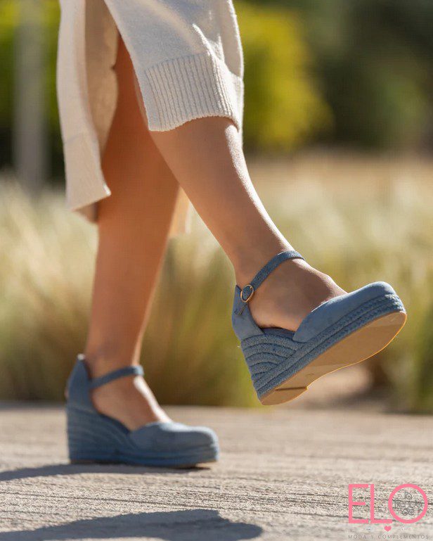 Cuñas en antelina de color azul claro.