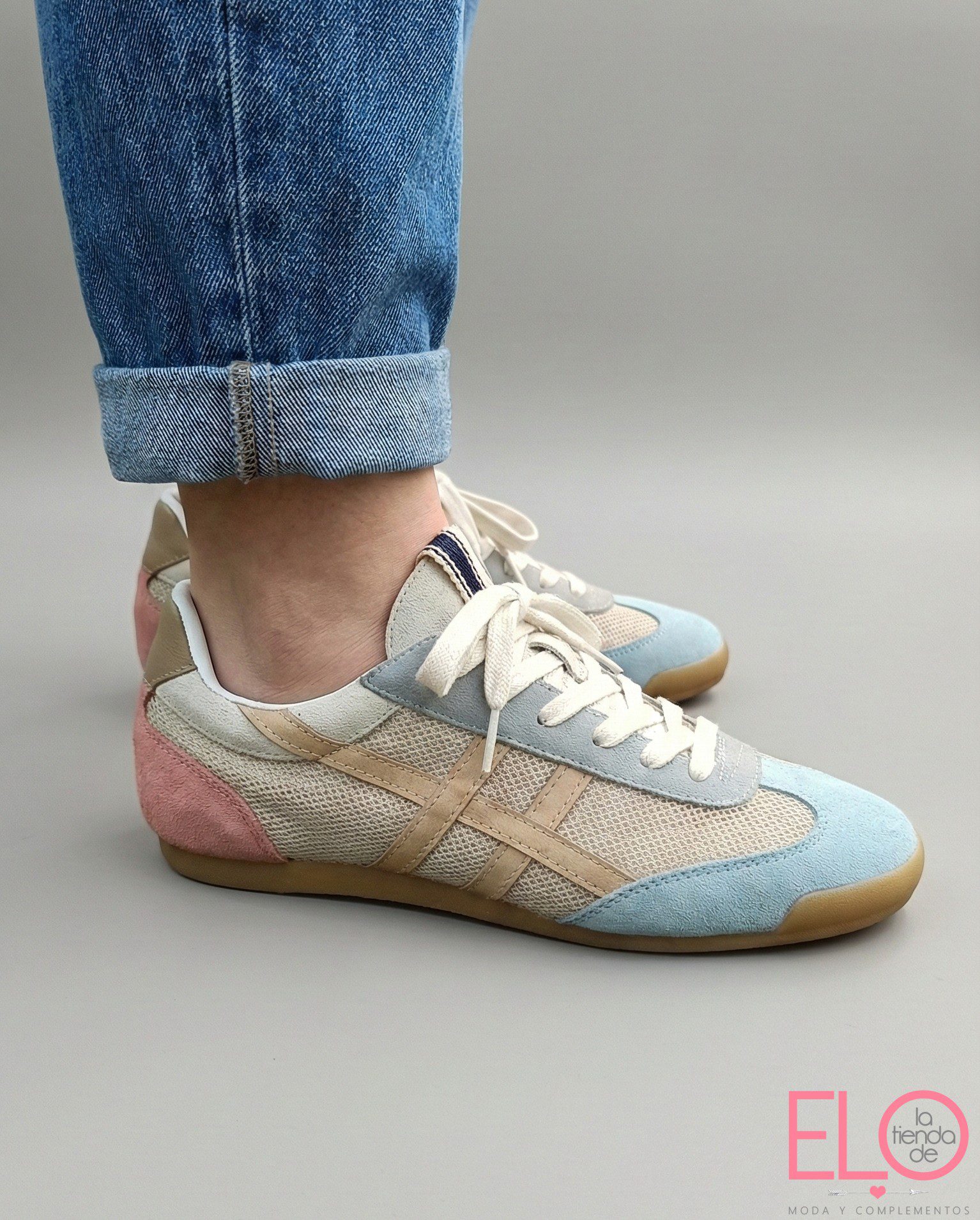 Zapatilla deportiva estilo retro en combinación de materiales.