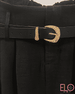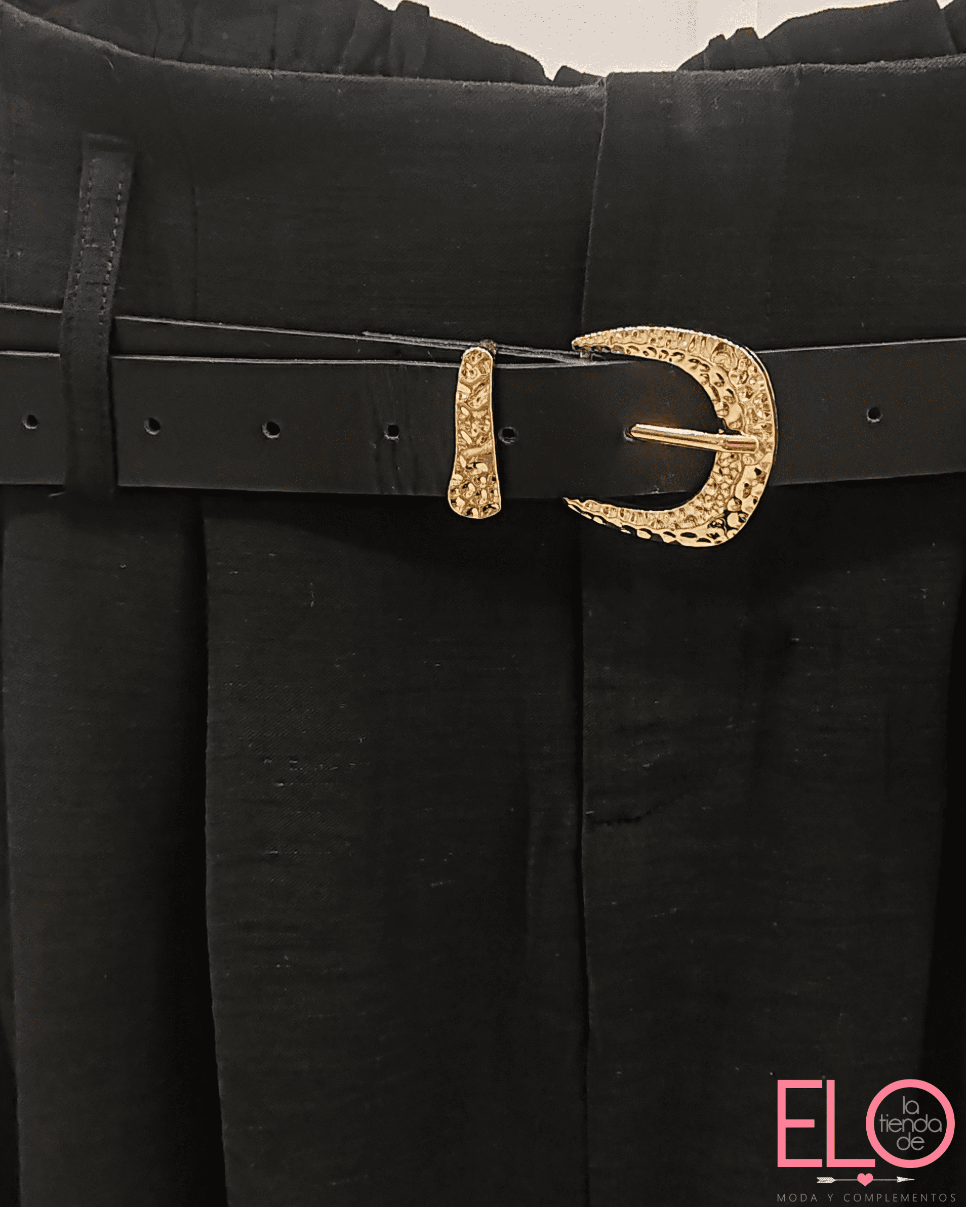 Con cinturón en polipiel y hebilla dorada.