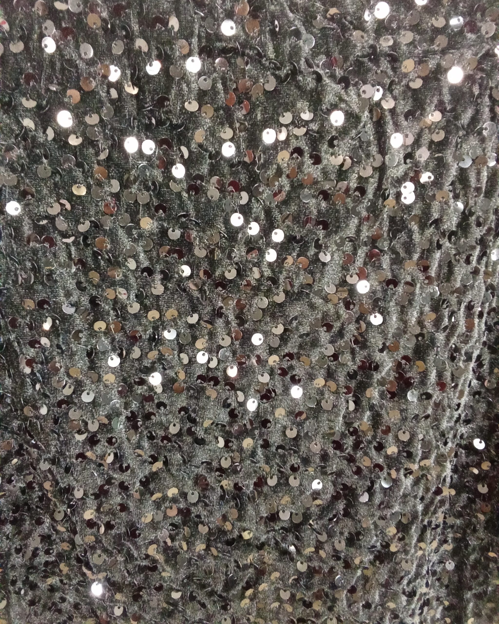 EL tejido tipo pana con lentejuelas negras bordadas en todo el pantalón.