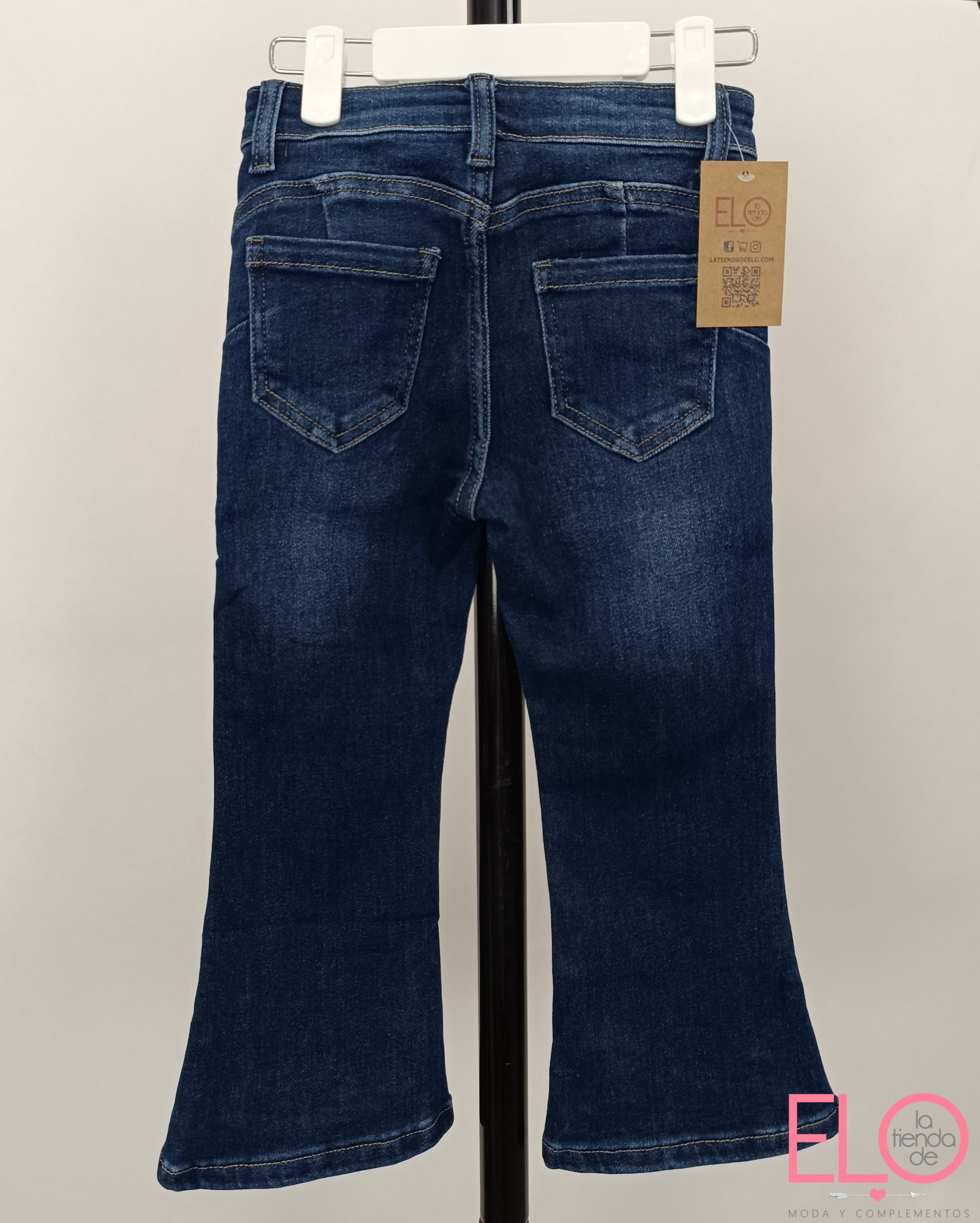 Con cuatro bolsillos y pata acampanada.