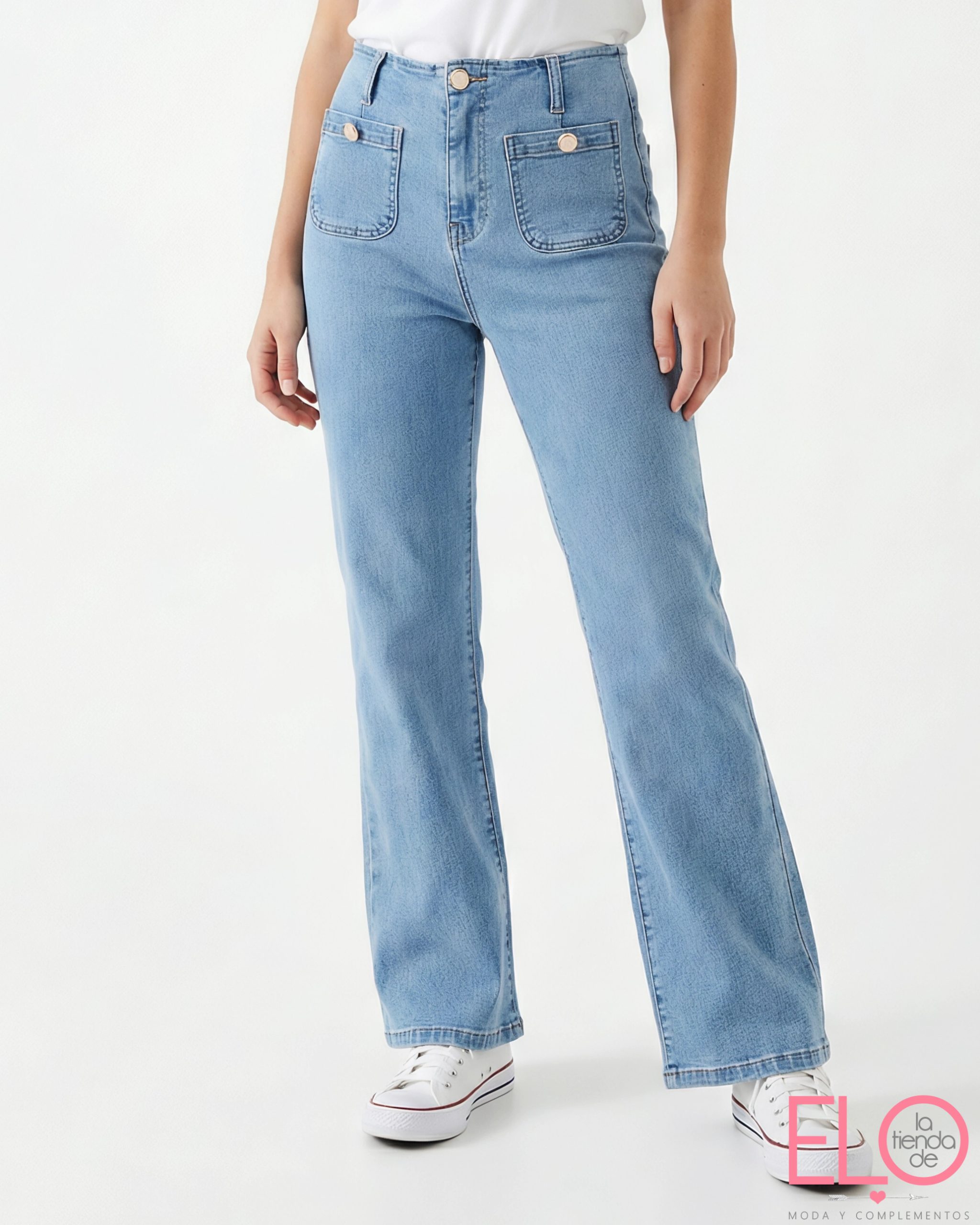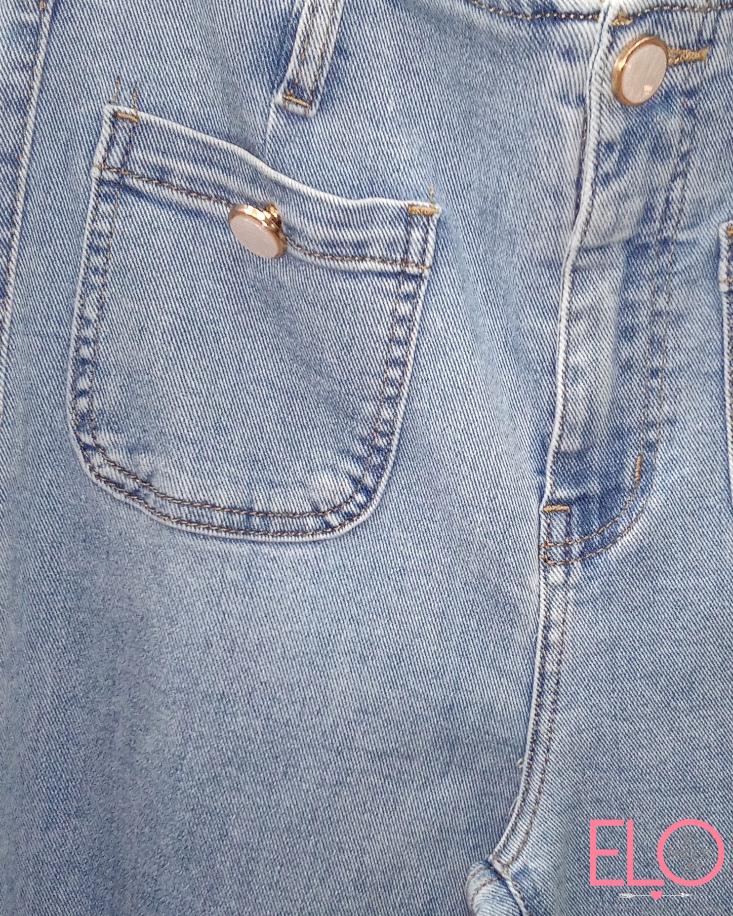En los bolsillos delanteros tiene un botón con diseño perlado.