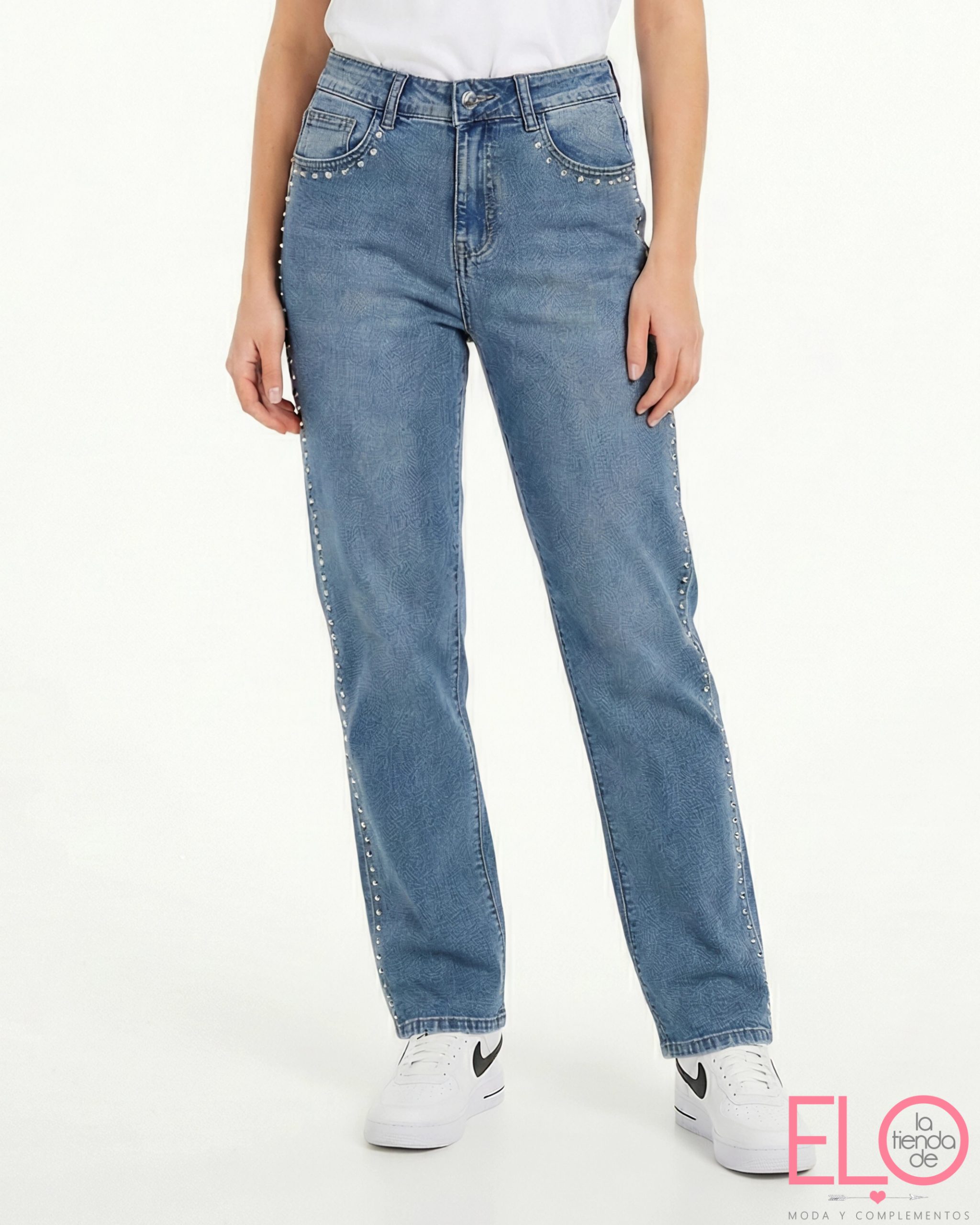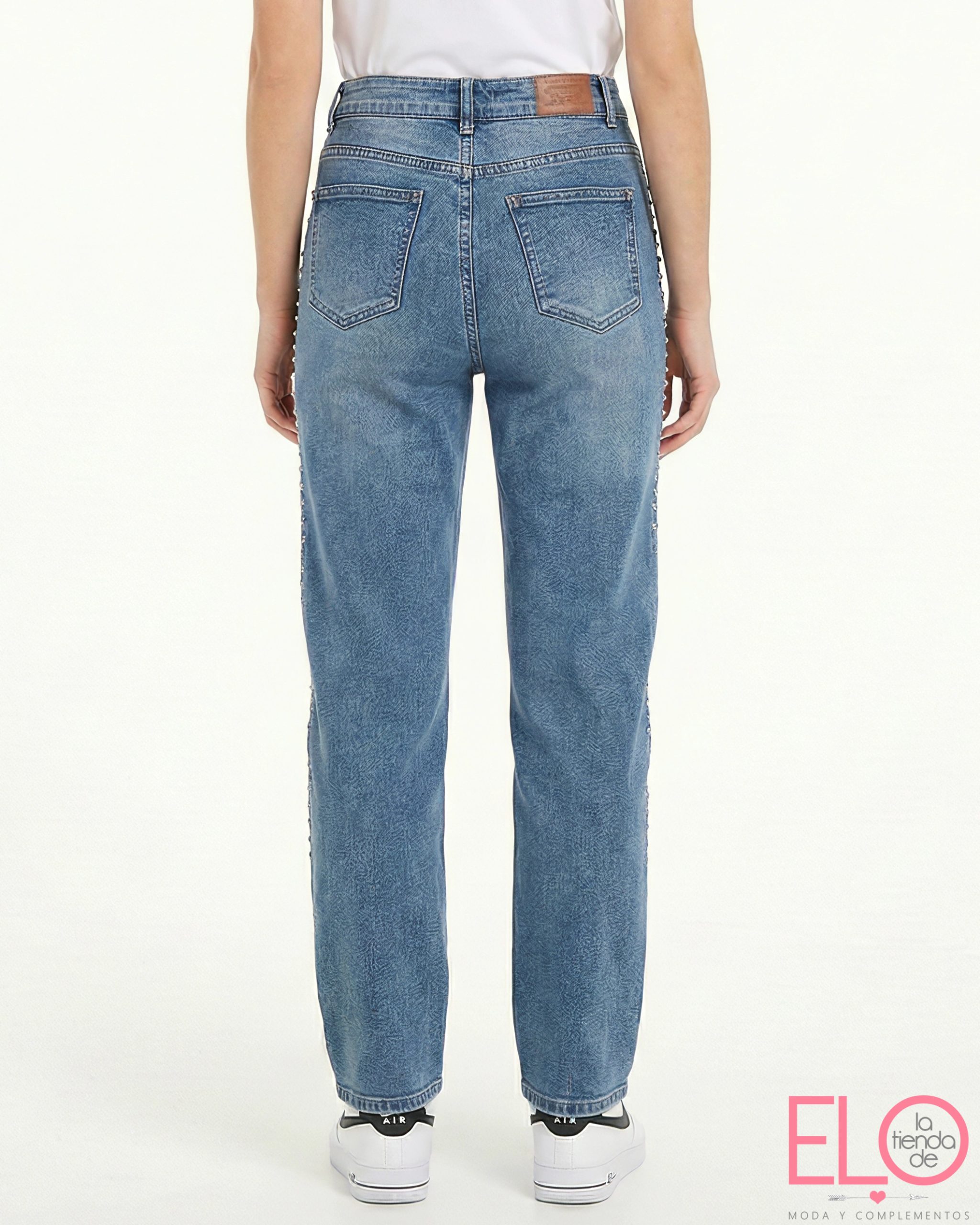 Lleva tachuelas a lo largo de la pierna.