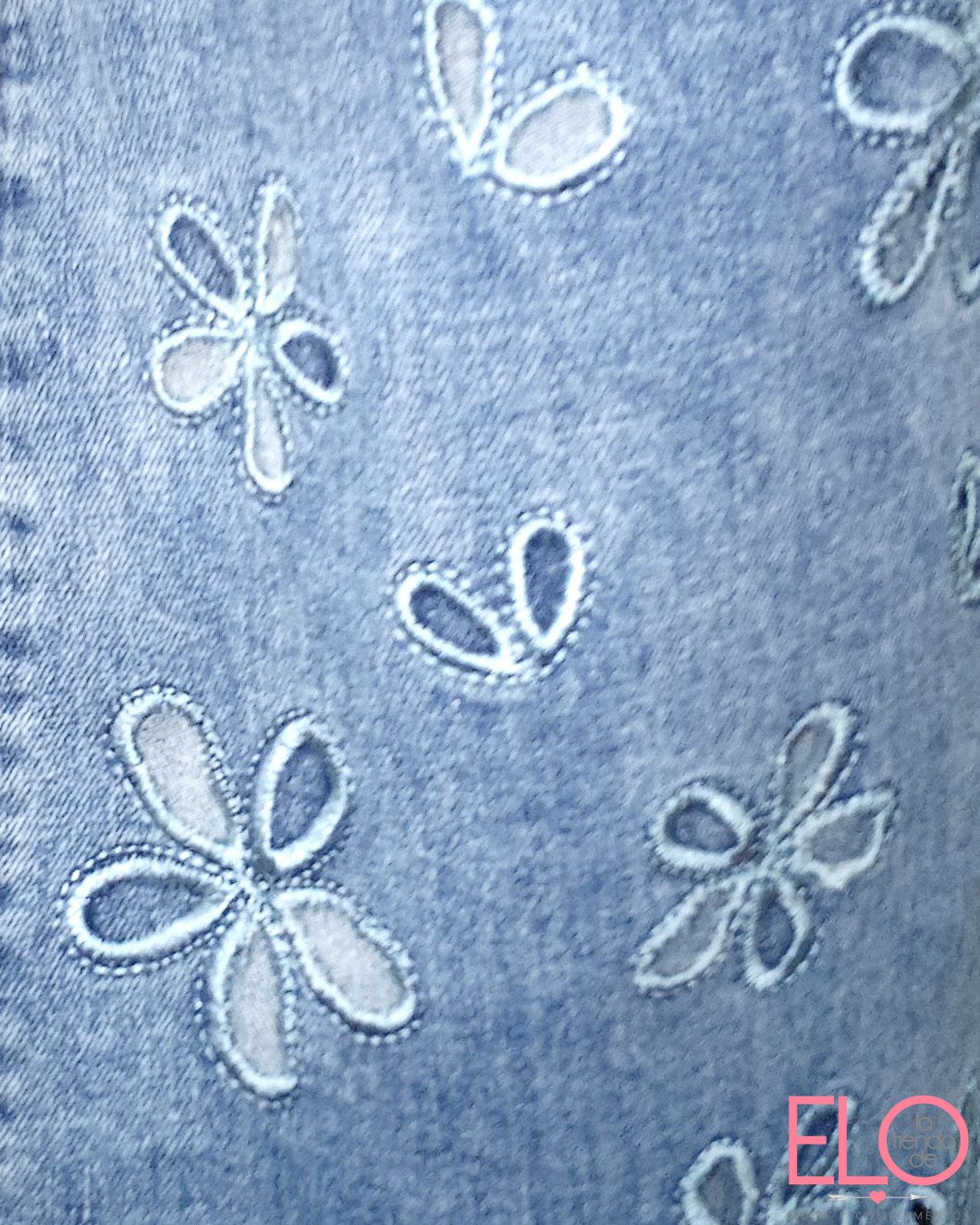 Lleva bordados en la pata de flores con troquelado.