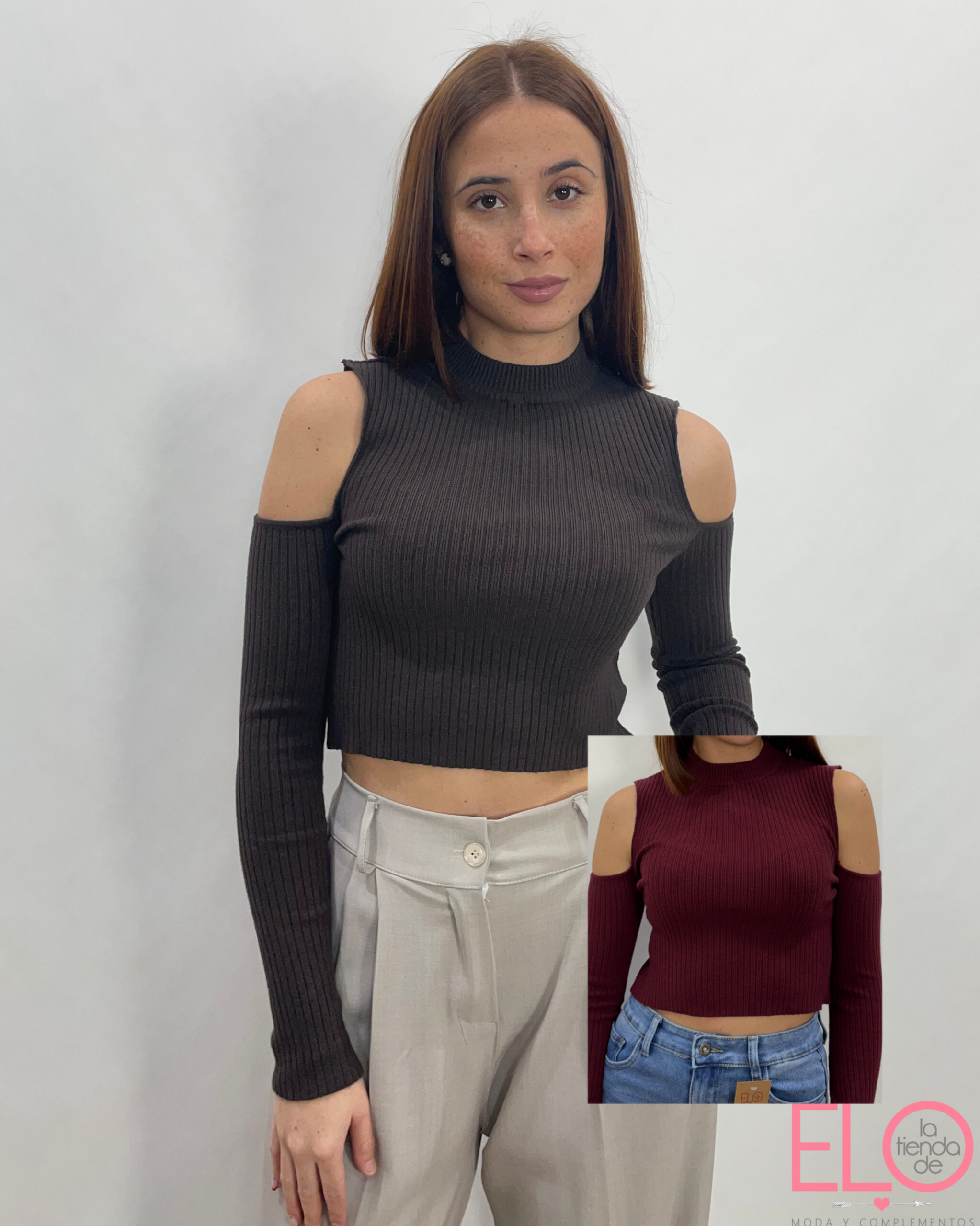 De tejido acanalado y hombros descubiertos.