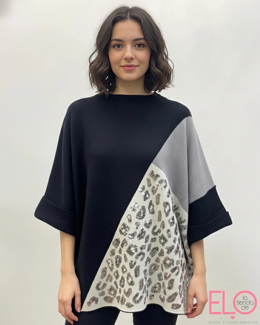 Jersey de manga corta en color negro, gris y beige.