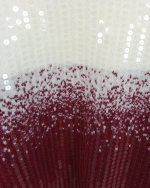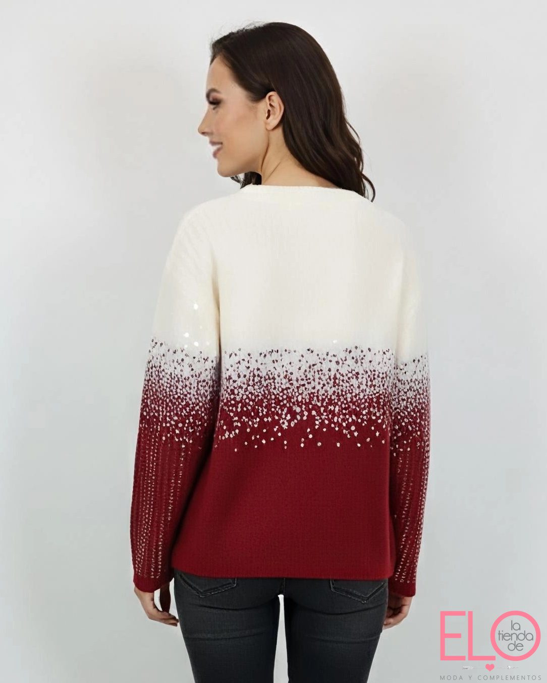Con lentejuelas transparentes en todo el frente y los brazos.